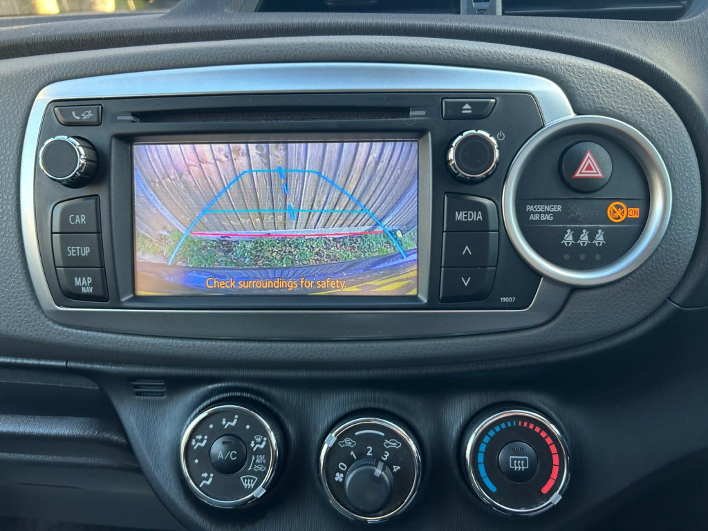 This 2013 Toyota Yaris 1.33 Dual VVT-i TR Hatchback has been driven 29177 miles and runs on petrol, making it ULEZ compliant. With 5 doors, 3 seats, and a 5-seat capacity, this hatchback is perfect for small families or daily commuters. The MOT is valid until 30/07/2026, providing peace of mind for the next few years. Equipped with features such as a 12V Socket, Bluetooth Connectivity, Bluetooth Music Streaming, and a Touch Screen 6.1in, this car offers modern technology for convenience and entertainment. Additionally, the Radio and CD Player with Aux In ensure a variety of media options while on the road. With its Euro 5 (101 ps) engine, this Yaris brings efficiency and performance together seamlessly, making it a reliable and stylish choice for any driver. v socket, bluetooth connectivity, bluetooth music streaming, radio and cd player with aux in, touch screen - 6.1in, toyota touch, usb and aux in, ipod and mp3 player connectivity and play list management via touch screen, 15in alloy wheels, door mirrors - colour keyed with integrated indicators, electric windows - front auto up and down, electric and heated door mirrors, exterior mirrors - electrically adjustable, tyre repair kit, abs - anti lock braking system, airbags - curtain, airbags - driver, airbags - driver knee, airbags - front passenger, airbags - front passenger cut-off switch, airbags - front side, bas - brake assist system, child protection locks, ebd - electronic brakeforce distribution, isofix child restraint system - 2nd row, immobiliser and alarm system, remote central locking, traction control - trc, vsc - vehicle stability control, air conditioning, assist grips, clean air filter, cupholders, driver and front passenger vanity mirrors with cover and illumination, front glovebox - passenger, leather handbrake lever, leather steering wheel and gear shift, rear seats 60-40 split folding, seats - anti-whiplash design, seats - drivers height adjustment, steering wheel - audio controls, tilt and telescopic adjustable steering wheel, tonneau cover - retractable, electric power steering - eps, rear view camera, tachometer, trip computer, trip information and vehicle settings, follow me home headlights