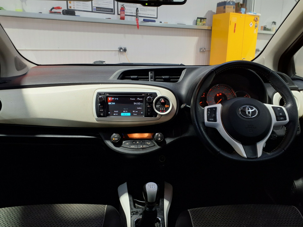 Benefit from excellent peace of mind with this Toyota Yaris, boasting a full service history and an MOT valid until October 2026. This 2014 Dual VVT-i Trend model, with its petrol engine, comes with a clear vehicle history check and a 3 month warranty for added reassurance. Its last service was completed on 11 December 2025 at 116,499 miles & Has 15 Service stamps, ensuring it has been well maintained.This Yaris Trend is equipped with a Style Pack and a Protection Plus Pack, enhancing its appeal. For convenience and safety, it includes a Protection Pack alongside air conditioning to keep you comfortable. Furthermore, this model falls into a low insurance group, making it an economical choice for many drivers, indicating it offers a more cost effective ownership experience compared to similar vehicles. Specifications Include; Front Fog lights + Dual Climate Control + 4 X Electric Windows + Cruise Control + Auto Rear View Dimming Mirror + Rear Spoiler. v socket, aux input, bluetooth connectivity, bluetooth music streaming, radio and cd player, speakers x6, touch screen - 6.1in, usb and ipod integration, 16in alloy wheels - two-tone turbine, bumpers - body coloured, chrome side trims, door handles - body coloured, door mirrors - chrome, electric windows - front and rear, electric and heated door mirrors, front chrome trim, front grille smoked chrome with chrome surround, privacy glass - rear, rear chrome trim, roof spoiler - colour keyed, tyre repair kit, abs - anti lock braking system, airbags - curtain, airbags - driver, airbags - driver knee, airbags - front passenger, airbags - front passenger cut-off switch, airbags - front side, alarm system, bas - brake assist system, bumpers - energy absorbing, child protection locks, collapsible steering column, collaspsible pedal support strut, ebd - electronic brakeforce distribution, isofix child restraint system - 2nd row, remote central locking, seat belt warning - driver, seat belt warning - front passenger, seat belt warning - rear, steering column lock, traction control - trc, transponder key engine immobiliser, vsc - vehicle stability control, air conditioning - climate control- dual zone, bottle holders, clean air filter, cupholder - front and rear, digital clock, front map lights, fully trimmed boot, interior tailgate pull handle, leather gear shift knob, leather handbrake lever, rain sensing wipers, raised centre console, rear parcel shelf - removable, rear seats 60-40 split folding, seats - anti-whiplash design, seats - drivers height adjustment, seats - front back pockets - passenger, seats - passengers height adjustment, steering wheel - audio controls, steering wheel - leather trimmed, steering wheel - yellow stitching, tilt and telescopic adjustable steering wheel, vanity mirrors - driver and front passenger with cover, ventilated glovebox, cruise control, electric power steering - eps, rear-view camera display on toyota touch, trip computer, dusk sensor, front fog lights, headlights - follow me home, rear lights - led