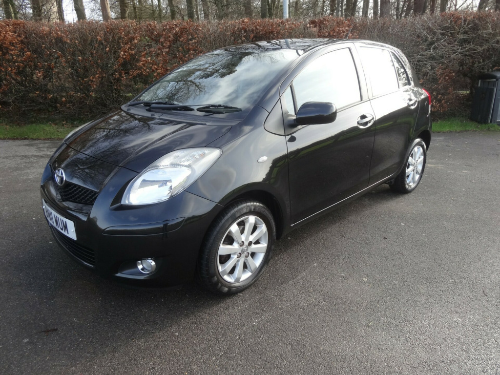 2011 TOYOTA YARIS SPIRIT NAV 1.3 PETROL 5 DOORFINISHED IN METALLIC BLACK, FULL SERVICE HISTORY, LOW MILEAGE ONLY 46,000 MILES, 2 KEYS, REMOTE CENTRAL LOCKING, SAT NAV, REAR PARKING SENSORS, ALLOY WHEELS, FRONT FOG LIGHTS, SPARE WHEEL KIT, NEW MOT AND SERVICE UPON SALE, PART EXCHANGE WELCOME, 6 MONTHS AUTOGUARD WARRANTY INCLUDED, uetooth system, centre multi info display, digital clock, external temperature gauge, lights on warning, rear parking sensor, remote fuel flap release, satellite navigation system, speed sensitive power steering, trip computer, 6 speakers (4 speakers/2 tweeters), auxiliary input socket, stereo radio/cd player and mp3 facility, usb connection, 2 speed wipers/variable intermittent/mist function, body colour door handles, body colour electric adjustable door mirrors, chrome fog light surround, colour keyed bumpers, darkened headlamps, electric front windows, front fog lights, green tinted glass, headlamp levelling, heated rear windscreen, manual rear windows, one-touch close driver, rear wiper, 12v accessory socket, 3 spoke perforated leather multi-function steering wheel, 4 assist grips, 60/40 split folding rear seat, air recirculation system, ashtray and cigar lighter, biarritz cloth upholstery, boot light, bottle holders, central courtesy light, centre console storage, clean air filter, climate control air conditioning, driver seat height adjust, driver, driver/passenger vanity mirrors with covers, front cupholders x 2, front map reading lights, front passenger underseat storage tray, front seat and rear pockets, front seats with lumbar support, height adjustable front head restraints, height adjustable rear seat head restraints (x3), internal chrome door handles, isofix system on outer rear seats, perforated leather gearknob, rear cupholder, rear seats fold flat, removable rear parcel shelf, sliding/reclining rear seats, telescopic steering column, tilt adjustable steering column, upper and lower passenger gloveboxes, 3 point seatbelts on all rear seats, abs+ebd+brake assist, collapsible pedal support, collapsible steering column, door open warning, driver and passenger airbags, drivers knee airbag, fasten seatbelt reminder, front and rear curtain airbags, front side airbags, height adjustable front seatbelts with pre-tensioners and load limiters, passenger airbag deactivate switch, rear child proof door locks, engine immobiliser, remote central locking, 15'' 8-spoke alloy wheels, space saver spare wheel, 15'' Alloys