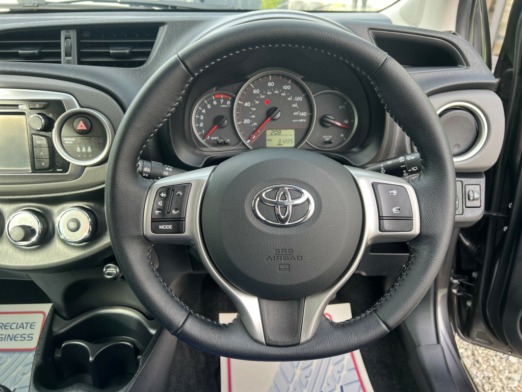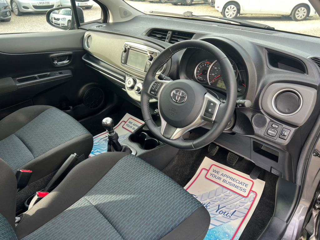 OFFERING THE BEST LOW MILEAGE LOW OWNERSHIP CARS AND CUSTOMER SERVICE IN THE AREA..A SUPERB CONDITION TOYOTA YARIS 1.3 TR..JUST 31,000 MILES.TOYOTA MAIN DEALER SERVICE HISTORY OF 8 SERVICE STAMPS..BUILT IN SAT NAV AND REVERSE CAMERAA NEW SERVICE, NO ADVISORY MOT AND OUR OWN NO QUIBBLE WARRANTY INCLUDEDHPI CLEARJUST VALETED..PX WELCOMEALL OUR CARS COME WITH 2 KEYS.., uetooth system, external temperature gauge, fuel indicator with low level warning, lights on warning, rear view camera, remote fuel flap release, speed sensitive power steering, trip computer, 6 speakers, auxiliary input socket, radio/cd + mp3, steering wheel mounted audio controls, touch screen audio system, usb connection, 2 speed front wipers + intermittent wipe, chrome rear garnish, colour keyed bumpers, colour keyed door handles, colour keyed door mirrors, electric front windows, electrically adjustable door mirrors, follow me home headlights, green tinted glass, headlamp levelling, heated rear windscreen, rear wiper, 12v accessory socket, 60/40 split folding rear seat, boot light, clean air filter, cloth upholstery, driver seat height adjust, driver, driver/passenger vanity mirrors with covers, front cupholders x 2, front map reading lights, front seats with lumbar support, height adjustable front head restraints, height adjustable rear seat head restraints (x3), isofix system on outer rear seats, leather gear knob, leather steering wheel, manual air conditioning, rear cupholder, removable rear parcel shelf, tilt/telescopic steering column, 3 point seatbelts on all rear seats, abs+ebd+brake assist, collapsible pedal support, curtain airbags, door open warning, driver and passenger airbags, drivers knee airbag, front side airbags, height adjustable front seatbelts with pre-tensioners and load limiters, passenger airbag deactivate switch, rear child proof door locks, seatbelt warning lamp and buzzer, vehicle stability control vsc + traction control, ventilated front disc brakes, engine immobiliser, remote central locking, 15'' premium alloy wheels, space saver spare wheel, 15'' Alloys