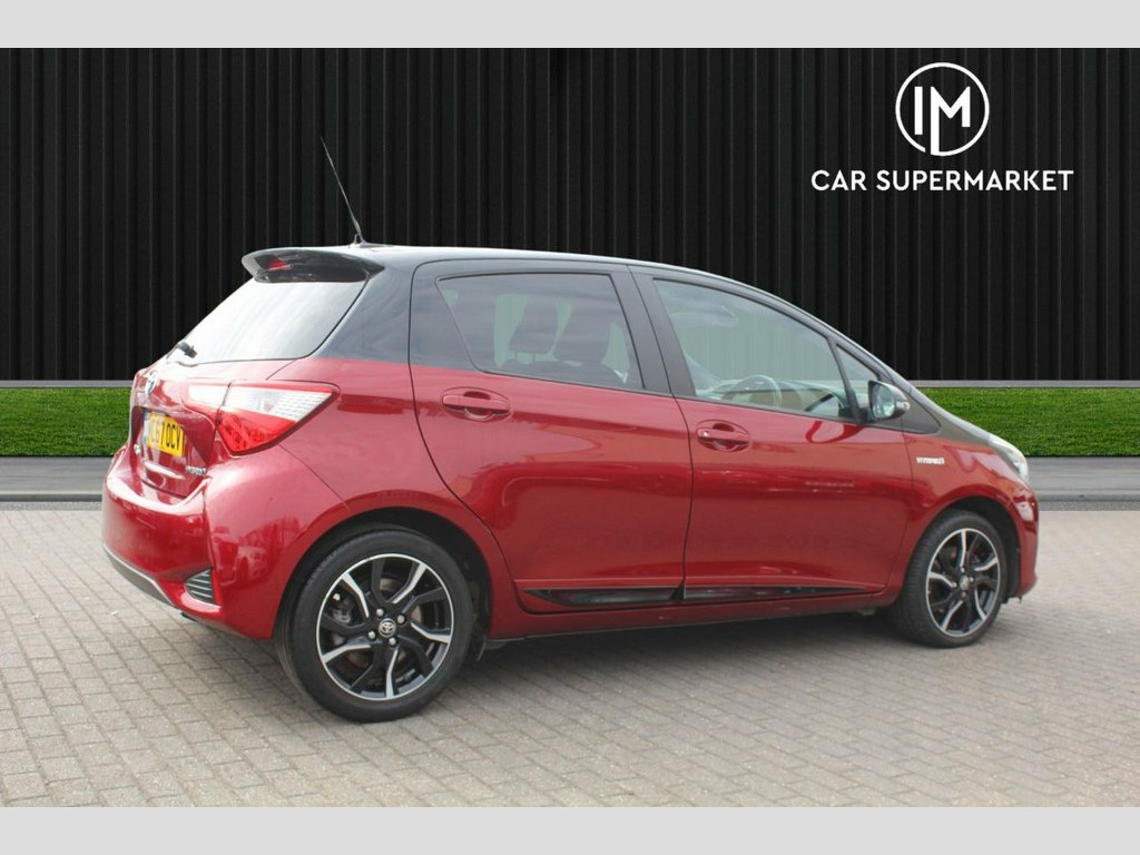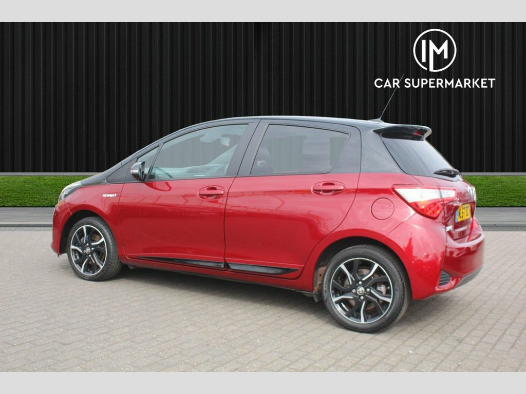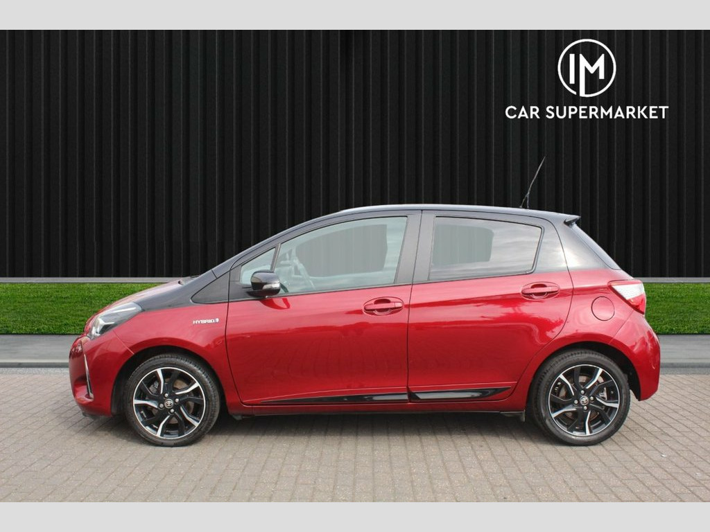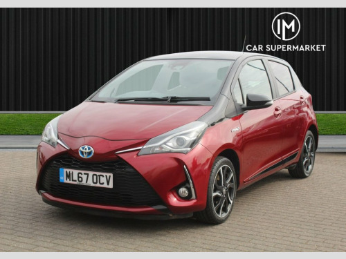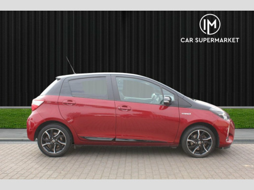IM Car Supermarket is pleased to offer a Toyota Yaris 1.5 VVT-h Blue Bi-Tone E-CVT Euro 6 (s/s) 5dr in Red with only 59574k miles on the clock, ULEZ Compliant, NO ULEZ Charges applies to this Vehicle, 3 Months Warranty, Service History, Number of services 3 (3 main dealer), Last Service 09/06/2022, Last service mileage 40,021 miles, MOT Expiry 15/10/2025. A High Speicification includes Climate Control, Alloy Wheels, Space Saver Spare Wheel, Privacy Glass, Phone & Media BT-Connections... 16in Alloy Wheels - Machined, 3-Spoke Leather Steering Wheel, ABS - Anti Lock Braking System, Active Headrests, Audio Switches on Steering Wheel, Auto Up and Down Function on Drivers Win, Bluetooth Connectivity, Chrome Surrounds on Front Fog Lights, Cruise Control, DAB Digital Radio, Daytime Running Lights - LED, Dual-Zone Automatic Air Conditioning, Electric Power Steering - EPS, Emergency Brake-Light Signal - EBS - Haz, Follow Me Home Headlights, Front Fog Lights, Front Passenger Airbag On-Off Switch, Front Power Windows, Front and Rear Cupholders, Glovebox, HAC - Hill Start Assist Control, High Mounted Rear Brake Light - LED, Honeycomb Lower Front Grille, Hybrid Energy Display, ISOFIX Fix