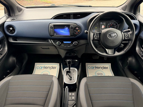 At Carvender we are introducing the practical and reliable 2017 Toyota Yaris 1.5 VVT-h Blue Bi-Tone Hybrid E-CVT 5dr. The 2017 Toyota Yaris is a compact hatchback that offers a perfect blend of efficiency, comfort, and advanced features. This Toyota Yaris is powered by a responsive 1.5 litre VVT-h engine which delivers 100 brake horsepower. From sleek exterior accents to modern interior design elements, this trim level adds convenience and style to every drive. This Toyota Yaris comes with advanced technology features including Reversing Camera, Cruise Control, Lane Departure Warning, Advance Collision Alert, Touchscreen Infotainment System with Bluetooth Connectivity, SatNav and much more. Please refer to advert photos for more features. This Toyota Yaris is in eye-catching colour and in pristine condition with only 48049 miles on the clock. This Yaris has been very well maintained by previous keepers as we have Full Service History from Toyota Main Dealer in the file. Services have been carried out at the mileages of 3965, 7806, 10455, 21241, 27394, 32907, 38705 and 48049 on 05/12/2025. Don't miss out on the opportunity to own this world's most reliable brand vehicle contact us today to schedule a test drive or visit our website for online home delivery with 14 days right to cancel your order. 16in Alloy Wheels - 5 Double-Spoke - Mac, 3-Spoke Leather Steering Wheel, 4.2in Coloured TFT Multi-Information Dis, 60-40 Split-Folding - 2nd Row - Rear Sea, Analogue Speedometer, Anti Lock Braking System - ABS with Elec, Audio Switches on Steering Wheel, Auto Up and Down Function on Drivers Win, Automatic Air Conditioning, Automatic High Beam, Bluetooth Connectivity, Boot Lamp, Child Safety Locks on Rear Doors, Cruise Control, Cruise Control Switch on Steering Wheel, DAB Digital Radio, Daytime Running Lights - LED, Door Handles - Body Coloured, Door Mirrors - Black, Driver and Front Passenger Personal Ligh, Driver and Front Passenger Whiplash Inju, Electric Power Steering - EPS, Electric an