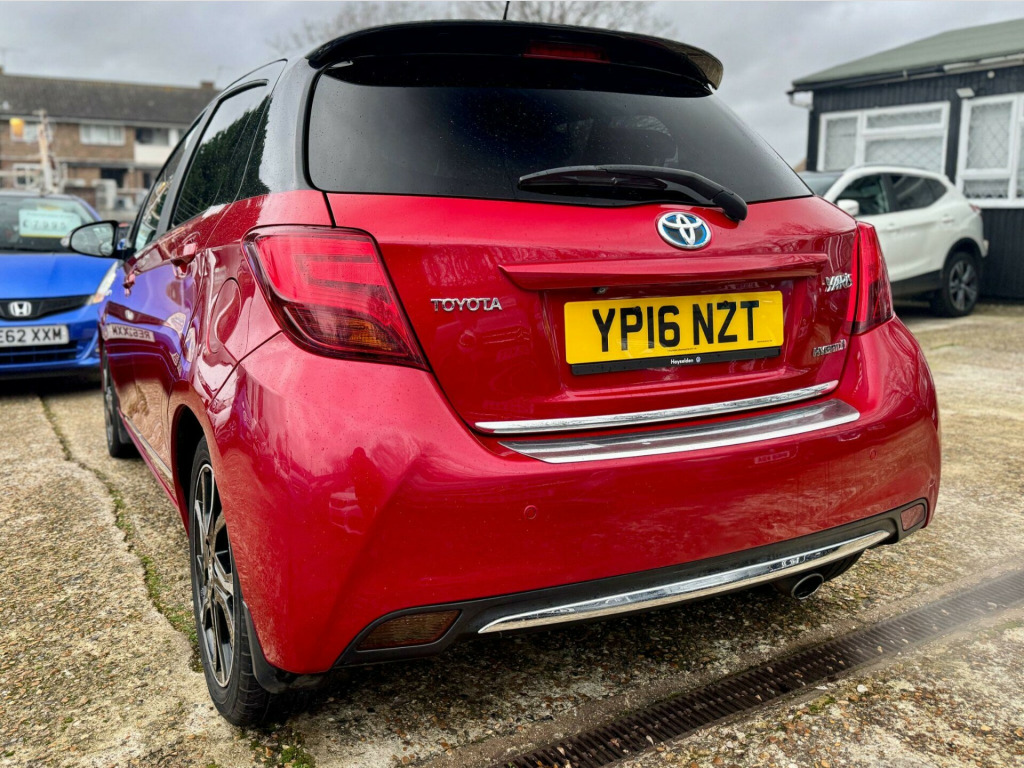 |||| THE USED CAR: ||||Pavillion Car Sales is pleased to offer an excellent example of a Toyota Yaris 1.5 VVT-h Design in the Design trim.This sleek red petrol hybrid hatchback with rare black accents is well equipped with great features including dual-zone automatic air conditioning, Toyota Touch 2 navigation, Bluetooth connectivity, cruise control, DAB radio, and a reversing camera with parking assistance, and more. The 1.5 litre petrol hybrid engine delivers an outstanding 78.5mpg, boasting 134bhp. With as little as £20 annual road tax and ULEZ compliance, this exceptionally economical and smooth automatic invites you for a test drive.|||| THE HISTORY: ||||Well MaintainedHaving only 2 former keepers, this Yaris has been well maintained inside and out. A thorough mechanical inspection has been carried out and service history is present. it comes with part service history as follows (5 Total Services) 1st at 8542, 2nd at 17195, 3rd at 27173, 3th at 43148, 5th at Current Mileage.|||| WHAT'S INCLUDED: ||||Benefits & Peace of MindExperience peace of mind with a NEW MOT, 12 months complimentary AA breakdown cover, and a 3-month warranty, extendable to a nationwide 36 months with the AA. 5-day Drive Away Insurance is available, and we can assist with road tax. 2 keys supplied.|||| ABOUT US: ||||The Family Run & Award-Winning Used Car DealershipWelcome to Pavillion Car Sales – a multi-award-winning, family-run car dealership with over a decade of expertise offering used cars for sale in Brighton & Crawley. As an AA-authorised and Trading Standards-approved dealership, we are committed to supplying high-quality second-hand vehicles at competitive prices. Every car is carefully selected and prepared to ensure a smooth, transparent, and pressure-free buying experience, delivering the perfect balance of quality, reliability, and value.PAVILION CAR SALES – CRAWLEY ????. 16in Alloy Wheels - Machine Faced, 3-Spoke Leather Steering Wheel, ABS - Anti Lock Braking System, Airbags - Front Passenger Cut-Off Switch, Audio Switches on Steering Wheel, Auto Up and Down Function on Drivers Window, Autonomous Emergency Braking, Bluetooth Connectivity, Body Coloured Door Mirrors, Chrome Surround on Lower Front Grille, Chrome Surrounds on Front Fog Lights, Cruise Control, DAB Digital Radio, Daytime Running Lights - LED, Dual-Zone Automatic Air Conditioning, EBS - Emergency Brake Signal, Electric and Heated Door Mirrors, Follow Me Home Headlights, Front Fog Lights, Front LED Light Guide, Front Power Windows, Front and Rear Cupholders, Gloss Black Honeycomb Lower Front Grille, Glovebox, Grey Instrument Panel, HAC - Hill Start Assist Control, Headrests - Active Front, High Mounted Rear Brake Light - LED, Hybrid Energy Display, ISOFIX Child Restraint System, LED Rear Combination Lights, Leather Gear Shift Knob, Leather Parking Brake Handle, Manual Rear View Mirror, Multi Information Display, Power Steering, Power and Remote Door Locking, Projector Headlights, Push Button Start, Rear Body Coloured Garnish, Rear Headrests x3, Rear Privacy Glass, Rear Spoiler, Reversing Camera, Seat Belt Reminder - Front and Rear, Seats - Drivers Height Adjustment, Seats - Sliding Front, Soft Touch Inner Door Garnish, Soft-Touch Instrument Panel, Space Saver Spare Wheel, Speakers x6, Steering Wheel - Telephone Switch, Supplemental Restraint System - SRS - Airbags - 7 Airbags, TPMS - Tyre Pressure Monitoring System, Toyota Touch 2, Traction Control - TRC, Turning Signal Integrated in Door Mirrors, USB Connection, VSC - Vehicle Stability Control, Toyota Touch 2 with Go Navigation, Parking Pack, Style Pack. Part service history