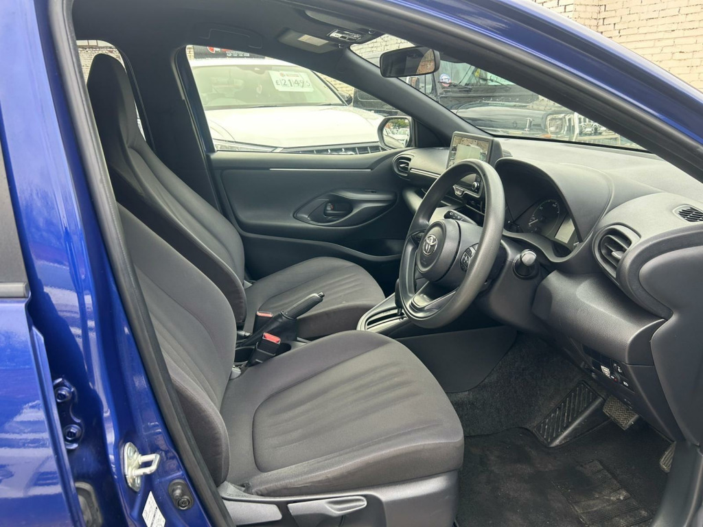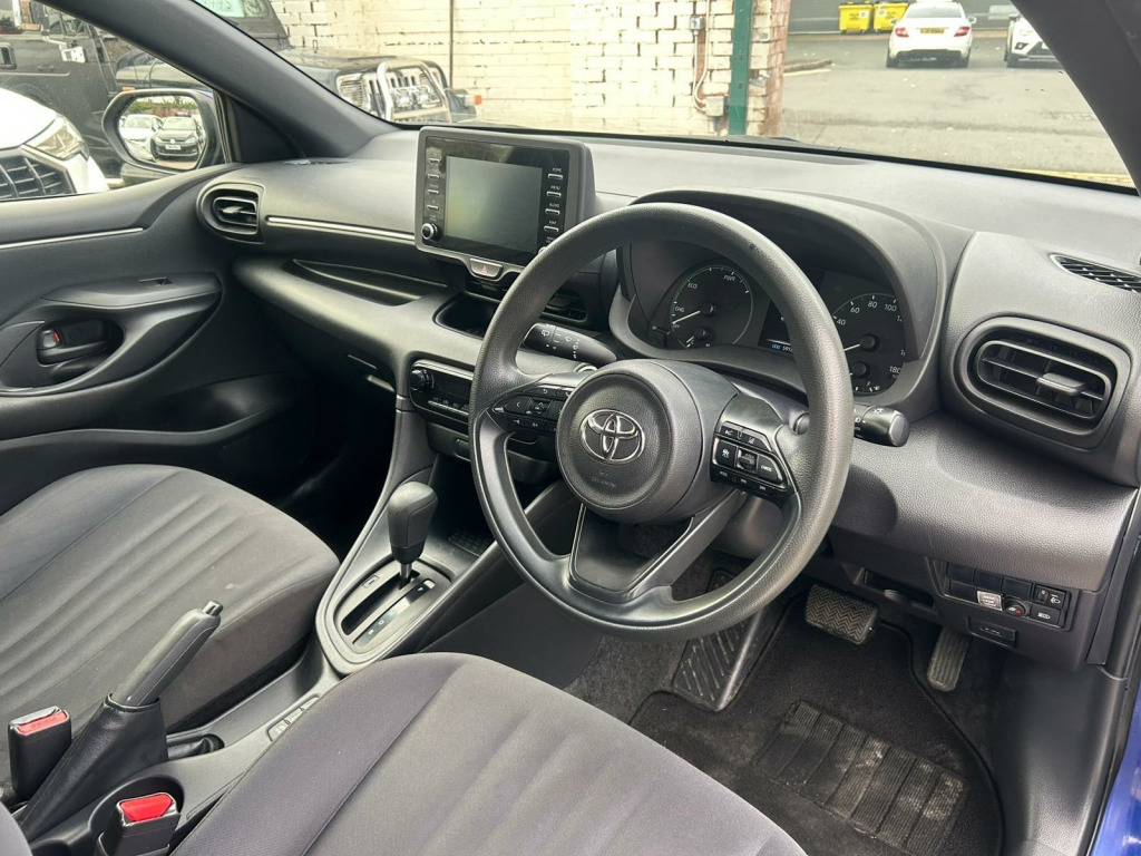 This 2021 Toyota Yaris VVT-h Design is a superb example of efficient motoring, boasting an impressive 69 mpg. This Euro 6 compliant model features a responsive 1.5L Petrol Hybrid engine, offering a smooth and economical driving experience. The Design trim level comes equipped with Automatic Air Conditioning, ensuring a comfortable cabin temperature with climate control. For enhanced safety and convenience, it includes Toyota Safety Sense 2, which incorporates Adaptive Cruise Control.Further enhancing your journey, this Yaris offers seamless Smartphone Integration with both Apple CarPlay and Android Auto. The vehicle is also fitted with LED Headlights that automatically switch on, providing excellent visibility. These features, combined with its low CO2 emissions, demonstrate how this Toyota Yaris stands out from other vehicles in its class, offering a more refined, safer, and environmentally conscious drive. in alloy wheels - machined face, 3-spoke leather steering wheel, 8in multimedia screen, abs - anti lock braking system, acoustic windscreen glass, active headrests, adjustable boot height - two level floor, adjustable speed limit with speed warning, alarm and immobiliser, armrest - front, auto windscreen wipers, automatic air conditioning, automatic headlights, autonomous emergency braking, bluetooth connectivity, body coloured door mirrors, coat hooks - rear grab handles, coloured binocular-inspired display with digital speedometer, cup holders - 2 front and door, data communication module, daytime running lights - led, e-call, electric power steering - eps, electric and heated door mirrors, electronic parking brake, emergency brake-light system - ebs, follow me home headlights, front fog lights - led, front passenger airbag on-off switch, front power windows with anti-jam function, full led rear lights, glovebox, hac - hill start assist control, height adjustable driver seat, hybrid energy display, isofix seat fixing - rear, led headlights, led high level stop light, leather gear shift, painted front grille, pollen filter, power remote door locking - double locking - deadlock, rear power windows with anti-jam protection, rear privacy glass, rear spoiler, reversing camera, seat belt reminder - front and rear, shark fin antenna, shopping bag hooks, smartphone integration including apple car play and android auto, soft-touch instrument panel, space saver spare wheel, speakers x4, split folding rear seats - 60-40, steering wheel switches, supplemental restraint system - srs with 8 airbags, tpms - tyre pressure monitoring system, tilt and telescopic steering wheel adjustment, toyota safety sense 2, toyota touch 2 multimedia system with dab radio, turning signal integrated in door mirrors, usb connectivity x3, vsc - vehicle stability control
