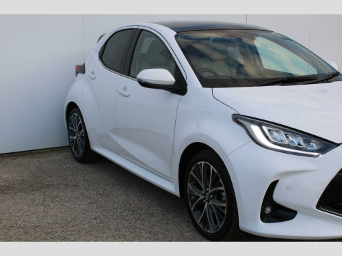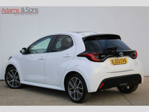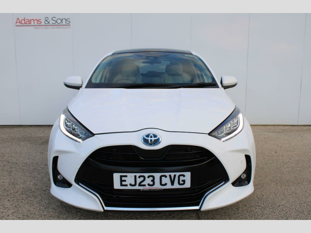 Adams & Sons are pleased to offer you this lovely presented throughout 2023 (23 plate registration) Toyota Yaris 1.5 VVT-h 5 door automatic petrol hybrid in top spec Excel trim. Finished in desirable Pure white metallic against optional grey fabric synthetic interior gives a nice look to this car. This particular car is complimented to a full Toyota main dealer service history record as pictured boasting a remainder of the Toyota manufacturers warranty. Benefitting from both Toyota remote keys and original book packs adds to the provenance of this well cared for sought after small car. Specification includes Satellite navigation, panoramic sunroof, rear parking camera, smartphone mirroring with Andriod auto and Apple Carplay, DAB radio, bluetooth telephone with media input, cruise control, optional painted 17 diamond turned alloy wheels, climate control air conditioning, keyless central locking, electronic tailgate and automatic LED headlights with high beam assist. Impressive low running costs matched to Toyota world famous reliability with fold down seat versatility! Whats not to like?! Low rate Hire Purchase and PCP plans available upon request (subject to applicant) here at Adams and sons we do not charge any dealer administration fees and pride ourselves on paramount customer service. All our cars are price checked daily to ensure you get the right car at the right price- Established business since 1932. Adams & Sons make every effort to ensure vehicle details on this listing are correct. However, the vehicle specifications can sometimes differ from that shown. Please satisfy yourself that a vehicle has a specific feature that is important to you before purchasing. Our staff will be happy to assist you.
