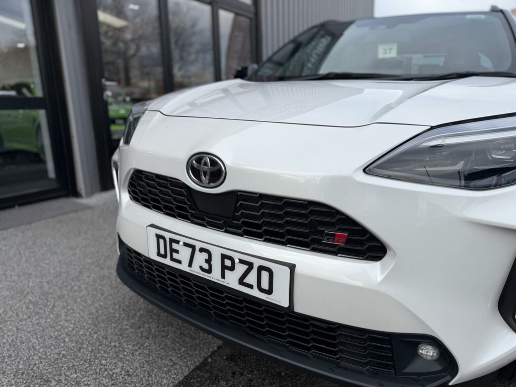 REDUCED - WAS £24,999 - NOW £23,999 - SAVE £1,000!, Middlehurst Road Race & Classic present this 2023/73 plate Toyota Yaris Cross 1.5 VVT-h GR SPORT E-CVT Automatic Hybrid 5dr finished in pearlescent Platinum Pearl White with half leather and suede cloth GR seats. It was first registered 08/09/2023 and has covered just 2,758 miles from new by its 2 registered keepers. Full Toyota main dealer service history. Balance of manufacturers warranty until 08/09/2028. This 2023 Toyota Yaris Cross VVT-h GR SPORT is an exceptional example, boasting incredibly low mileage of just 2,758 miles for its age. As a Euro 6 compliant model, this GR SPORT trim features a responsive 1.5L Petrol Hybrid engine, offering a superb blend of efficiency and performance. Inside, youll find comfort and convenience with Dual-Zone Automatic Air Conditioning and heated front seats, while the Reversing Camera with parking assistance makes manoeuvring effortless. Stay connected and entertained with Bluetooth Connectivity and the integrated Tech Pack, which includes Android Auto and Apple CarPlay for seamless smartphone integration. The Intelligent Adaptive Cruise Control enhances your driving experience on longer journeys. This Yaris Cross GR SPORT stands out with its impressive fuel economy, achieving a highlight of 57 mpg, which indicates it is more economical than many similar vehicles. Furthermore, its low CO2 emissions and low insurance group highlight its cost effectiveness, making it a sensible choice for many drivers. This combination of advanced technology, efficient hybrid power, and economical running costs makes this Toyota Yaris Cross a truly compelling proposition.
