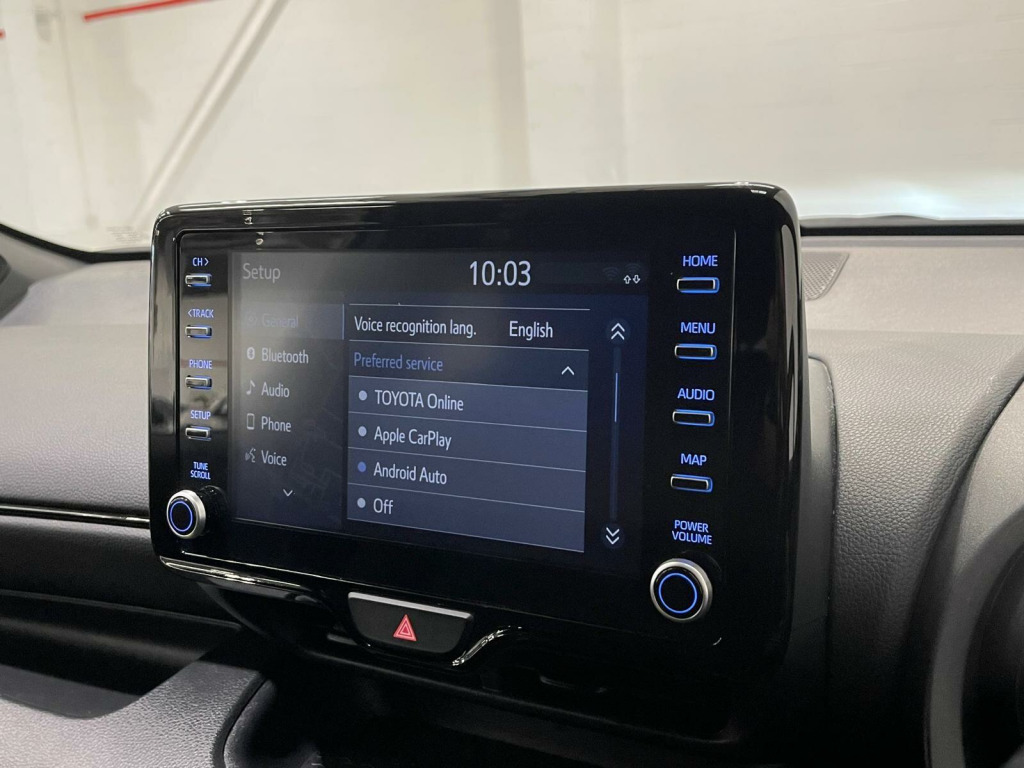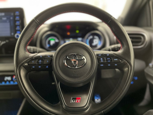 FINANCE & PART EXCHANGE AVAILABLE* - Only 1 registered keeper & 33,274 miles from new, TOYOTA MAIN DEALER SERVICE HISTORY, 2 KEYS - this FANTASTIC SPORTY TOYOTA YARIS GR SPORT HYBRID AUTOMATIC is finished in stunning sports grey & is complimented with contrasting sports trim and extends itself to the following additional features - Toyota GR Sports styling, on board satellite navigation system, reverse camera, dual zone climate control / automatic air conditioning, trip computer, cruise control with speed limiter, leather trimmed multi function steering wheel, front & rear park distance control, Bluetooth telephone prep, DAB digital radio, media input, Apple CarPlay / Android Auto, Toyota online, voice command, keyless start, privacy glass, lane trace assist, drive mode select, EV mode, pre-collision system, blind spot monitor, road sign assist, electric folding & heated exterior mirrors, LED auto headlights, rain sensor, power assisted steering, abs, airbags, electric mirrors, electric windows, remote central locking, head restraints, Toyota 18'' sports alloy wheels, Toyota anti theft system. ***FINANCE AVAILABLE - subject to status. T&C's apply.***PART EXCHANGE AVAILABLE***ALL VEHICLES ARE HPI & NATIONAL MILEAGE REGISTER CHECKED***THE AA WARRANTY IS SUBJECT TO TERMS & CONDITIONS AND DOES NOT COVER VEHICLES THAT ARE BEING USED FOR TAXI, PRIVATE HIRE, CHAUFFEURING PURPOSES OR FOR REWARD.***Please note, that the specifications/components/features etc. are generic to that vehicle of the type advertised but may not be included in the specific vehicle that is for sale. It is for the intended purchaser to satisfy themselves of the presence or absence of any specifications/components/features before sale. Please ask if you are uncertain of anything and we will see if we can assist.. 18in Alloy Wheels - Machined-Faced with GR SPORT Red Deco Lines, 2x Master Key - Flip Out Blade and Remote Operation, 3-Spoke Leather Steering Wheel, 8in Multimedia Screen, ABS - Anti Lock Braking System, Acoustic Windscreen Glass, Active Headrests, Adaptive Cruise Control, Adjustable Speed Limit with Speed Warning, Alarm and Immobiliser, Armrest - Front, Auto Windscreen Wipers, Automatic Headlights, Black Roof Lining, Bluetooth Connectivity, Body Coloured Door Mirrors, Coat Hooks - Rear Grab Handles, Coloured Binocular-Inspired Display with Digital Speedometer, Cup Holders - 2 Front and Door, Data Communication Module, Daytime Running Lights - LED, Dual-Zone Automatic Air Conditioning, E-Call, Electric Power Steering - EPS, Electric and Heated Door Mirrors, Electronic Parking Brake, Emergency Brake-Light System - EBS, Follow Me Home Headlights, Front Fog Lights - LED, Front Passenger Airbag On-Off Switch, Front Power Windows with Anti-Jam Function, Full LED Rear Lights, Glovebox, Grille - Lower Front Grille Surround Dark Chrome, HAC - Hill Start Assist Control, Height Adjustable Driver Seat, Height Adjustable Passenger Seat, Hybrid Energy Display, ISOFIX Seat Fixing - Rear, LED Front Light Guide, LED Headlights, LED High Level Stop Light, LED Indicators, LED Rear Light Guide, Leather Gear Shift, Manual Headlight Levelling, Map Pockets - Back of Passenger Front Seat, Painted Front Grille, Pollen Filter, Power Remote Door Locking - Double Locking - Deadlock, Push Button Start, Rear Power Windows with Anti-Jam Protection, Rear Privacy Glass, Rear Spoiler, Remote AC via MyT, Remote Locking via MyT, Reversing Camera, Seat Belt Reminder - Front and Rear, Shark Fin Antenna, Shopping Bag Hooks, Smart Entry, Smartphone Integration including Apple Car Play and Android Auto, Soft-Touch Instrument Panel, Space Saver Spare Wheel, Split Folding Rear Seats - 60-40, Sports Seats - Front, Steering Wheel Switches, Supplemental Restraint System - SRS with 8 Airbags, TPMS - Tyre Pressure Monitoring System, Tilt and Telescopic Steering Wheel Adjustment, Toyota Safety Sense 2, Toyota Touch 2 Multimedia System with DAB Radio, Turning Signal Integrated in Door Mirrors, USB Connectivity, VSC - Vehicle Stability Control, Voice Recognition, Fabric - Black with Red Stitching.