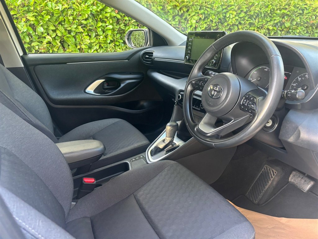 This 2022 Toyota Yaris VVT-h Icon is a superb example, having had only one owner from new and boasting a clear vehicle history check.  As a Euro 6 compliant model, it features a responsive 1.5L petrol hybrid engine, offering an impressive fuel economy of 69 mpg and low CO2 emissions.  Inside, you'll find a host of modern conveniences, including a reversing camera with parking assistance, Bluetooth connectivity for seamless phone integration, and automatic air conditioning for a comfortable cabin environment.  Enjoy your favourite apps on the go with smartphone integration, supporting both Apple CarPlay and Android Auto.  Furthermore, the Toyota Safety Sense 2 suite provides advanced driver assistance, including adaptive cruise control for a more relaxed driving experience.  The exceptional fuel economy of 69 mpg and low CO2 emissions clearly set this Yaris apart from many other vehicles in its class, making it an economical and environmentally conscious choice. The combination of its single ownership, clear history, and comprehensive features like the reversing camera, Bluetooth, climate control, smartphone integration, and adaptive cruise control, all contribute to a refined and practical driving experience. This Yaris Icon represents a well maintained and feature rich option for those seeking efficiency and modern technology. 16in Alloy Wheels - Silver,3-Spoke Leather Steering Wheel,4.2in Coloured TFT Multi-Information Display with Anologue Speedometer,7in Multimedia Screen,ABS - Anti Lock Braking System,Acoustic Windscreen Glass,Active Headrests,Adjustable Boot Height - Two Level Floor,Adjustable Speed Limit with Speed Warning,Alarm and Immobiliser,Armrest - Front,Auto Windscreen Wipers,Automatic Air Conditioning,Automatic Headlights,Autonomous Emergency Braking,Bluetooth Connectivity,Body Coloured Door Mirrors,Coat Hooks - Rear Grab Handles,Cup Holders - 2 Front and Door,Data Communication Module,Daytime Running Lights - LED,E-Call,Electric Power Steering - EPS,Electric and Heated Door Mirrors,Electronic Parking Brake,Emergency Brake-Light System - EBS,Follow Me Home Headlights,Front Passenger Airbag On-Off Switch,Front Power Windows with Anti-Jam Function,Glovebox,HAC - Hill Start Assist Control,Halogen Projector Headlights,Height Adjustable Driver Seat,Hybrid Energy Display,ISOFIX Seat Fixing - Rear,LED High Level Stop Light,Leather Gear Shift,Pollen Filter,Power Remote Door Locking - Double Locking - Deadlock,Rear Spoiler,Reversing Camera,Seat Belt Reminder - Front and Rear,Shark Fin Antenna,Shopping Bag Hooks,Smartphone Integration including Apple Car Play and Android Auto,Soft-Touch Instrument Panel,Space Saver Spare Wheel,Speakers x4,Split Folding Rear Seats - 60-40,Steering Wheel Switches,Supplemental Restraint System - SRS with 8 Airbags,TPMS - Tyre Pressure Monitoring System,Tilt and Telescopic Steering Wheel Adjustment,Toyota Safety Sense 2,Toyota Touch 2 Multimedia System with DAB Radio,Turning Signal Integrated in Door Mirrors,USB Connectivity x3,VSC - Vehicle Stability Control