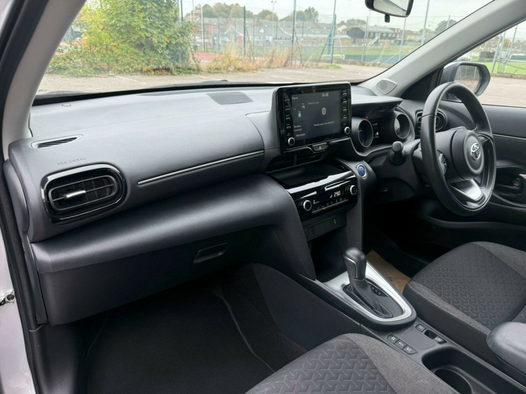 This 2024 Toyota Yaris Cross VVT-h Icon is a superb example, having had only one owner since new. This stylish compact SUV boasts a 1.5 litre petrol hybrid engine, meeting Euro 6 emissions standards. It comes equipped with automatic headlights, Bluetooth connectivity for seamless calls and music, and intelligent adaptive cruise control for relaxed journeys. The 8 inch Toyota Touch 2 multimedia system offers full smartphone integration with Apple CarPlay and Android Auto, complemented by a reversing camera for easier parking.The Yaris Cross Icon is designed to be economical and efficient. Its impressive fuel economy of 64 miles per gallon, combined with low CO2 emissions and a low insurance group, means it offers significant savings on running costs compared to many other vehicles in its class. This makes it a practical and sensible choice for everyday driving.. 16in Alloy Wheels - 10 Spoke, 3-Spoke Leather Steering Wheel, 4.2in Multi-Information Display Screen, 8in Toyota Touch 2 Multimedia System with Smartphone Integration - Apple CarPlay and Android Auto, Adjustable Rear Headrests, Adjustable Speed Limiter - ASL, Airbags - Driver and Passenger - Central, Airbags - Driver and Passenger - Front, Airbags - Driver and Passenger - Side, Airbags - Passenger - On-Off Switch, Airbags - Rear Passenger - Side, Anti Lock Braking System - ABS with Electronic Brake-Force Distribution - EBD, Anti-Jam Protection on Power Windows, Assist Grips - Front and Rear, Audio - Telephone - Multimedia - ACC - LDA - Voice Recognition and Speed Limiter Switches on Steering Wheel, Automatic Air Conditioning, Automatic Headlight Cut-Off, Automatic High Beam, BAS - Brake Assist System, Black Protection Moulding on Side Doors, Black Wheel Arch Moulding, Bluetooth Connectivity, Boot Light, Central Armrest, Child Safety Door Locks, Coat Hooks - 2x Rear, DAB Digital Radio, Daytime Running Lights - LED, Digital Speedometer, Door Handles - Body Coloured, Door Mirrors - Manually Retractable - Heated and Power-Adjustable, Drive Mode Selector, Driver Attention Alert, Driver and Front Passenger Personal Lights, Driver and Front Passenger Whiplash Injury Lessening - WIL - Seats, Driver and Passenger Sun Visors with Mirror, EBS - Emergency Brake Signal, Electric Power Steering - EPS, Electronic Parking Brake, Fabric Door Trims, Floor Mats - Yaris Cross Design, Follow Me Home Headlights, Front 12V Power Outlet, Front Bumper - Body Coloured, Front Console Box, Front Cup Holders, Front Grille - Lower - Black, Front Grille - Upper - Black, Front Power Windows with Auto Up and Down Function, Front Seat Belt Reminder, Glovebox, Grey Roof Lining, HAC - Hill Start Assist Control, Halogen Projector Headlamps, Headlight Cut-Off Reminder, Headlights - Automatic On, Hybrid System Indicator, ISOFIX Child Restraint System, Immobiliser, Indicator Integrated in Door Mirrors, Intelligent Adaptive Cruise Control, Intrusion Alarm, Key Reminder Warning, LED High-Mounted Stop Light, Lane Trace Assist, Leather Gear Shift Knob, Manual Headlight Levelling, Manual Tilt and Telescopic Adjustable Steering Wheel, MyT Connected Services, Noise Reduction Layer on Windscreen, Pollen Air Filter, Power Door Locks, Power Passenger Window Lock, Pre-Collision System with Emergency Steering Assist, Pre-Collision System with Pedestrian and Cyclist Detection, Rain Sensing Wipers, Rear Bumper - Body Coloured, Rear Power Windows, Rear Seat Belt Reminder, Rear Spoiler, Rear Window Defogger and Wiper, Remote Door Locking, Reversing Camera, Road Sign Assist, Seats - Drivers Height Adjustment, Seats - Passengers Height Adjustment, Shark Fin Antenna, Smart Entry and Push-Button Start, Soft Tonneau Cover, Speakers x6, Split Folding Rear Seats - 60-40, Steering Assisted Vehicle Stability Control - S-VSC, Traction Control - TRC, Tyre Pressure Warning System, Tyre Repair Kit, USB Connector, eCall Emergency Call System.