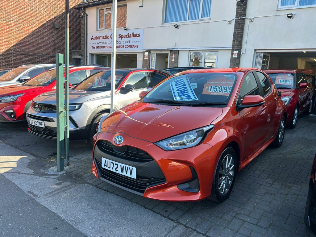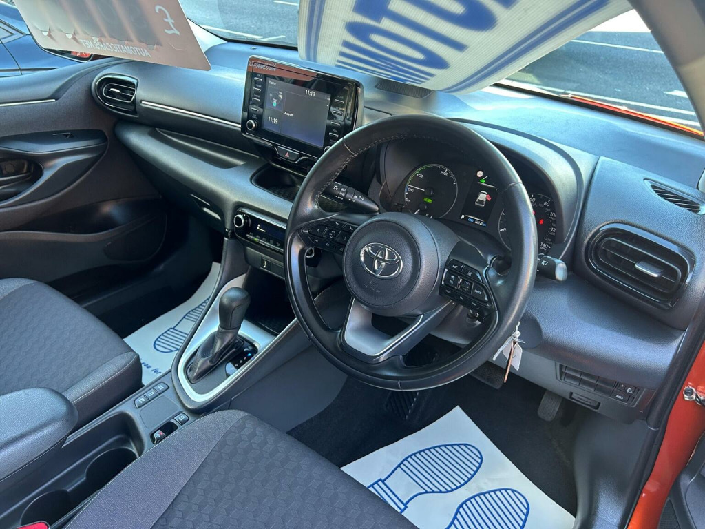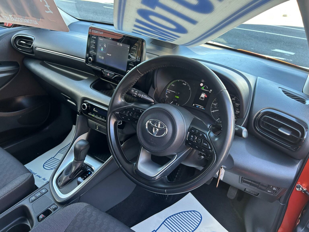 Rare colour...This 2022 Toyota Yaris VVT-h Icon is a superb example, having had only one owner since new. As a Euro 6 compliant model, it features a responsive 1.5L petrol hybrid engine, offering an impressive fuel economy of 69 mpg. Inside, youll find a comfortable cabin equipped with automatic air conditioning for effortless climate control, and Bluetooth connectivity for seamless audio streaming and calls. For enhanced safety and convenience, it includes Toyota Safety Sense 2, which incorporates adaptive cruise control, and automatic headlights that switch on when needed. Smartphone integration is also a key feature, with Apple CarPlay and Android Auto allowing you to connect your device for navigation and entertainment. The low CO2 emissions of this Yaris highlight its efficiency, making it a more environmentally conscious choice. The combination of its exceptional fuel economy and advanced safety features, such as adaptive cruise control and automatic headlights, sets it apart from many other vehicles in its class. Furthermore, the inclusion of smartphone integration with Apple CarPlay and Android Auto ensures you stay connected and entertained on every journey, providing a superior driving experience.