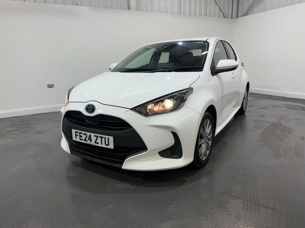 Toyota Yaris 1.5 VVT-h Icon Hatchback 5dr Petrol Hybrid E-CVT Euro 6 (s/s) 116ps. This Toyota Yaris Icon combines excellent fuel efficiency with smooth and easy driving thanks to its reliable petrol hybrid engine and E-CVT automatic gearbox. Euro 6 compliant and ULEZ friendly, it is ideal for both city driving and longer journeys. The Icon specification offers a good level of comfort and technology. Features include alloy wheels, a reversing camera to assist with parking, cruise control and climate control for a relaxed driving experience. The interior is well finished with a leather steering wheel, while convenience features such as electric door mirrors, automatic lights and automatic wipers add to everyday ease of use. Infotainment includes a DAB radio with Bluetooth connectivity, allowing hands-free calls and audio streaming. A practical, economical and dependable hatchback that is inexpensive to run and easy to live with, making it an excellent choice for a wide range of drivers. 16in Alloy Wheels - Silver, 3-Spoke Leather Steering Wheel, 4.2in Coloured TFT Multi-Information Dis, 9in Toyota Touch 3 Multimedia System, ABS - Anti Lock Braking System, Accessory Connector, Acoustic Windscreen Glass, Adaptive Cruise Control - Full Range, Adjustable Speed Limiter - ASL, Air Spats - Front and Rear, Air Ventilation System, Airbags - Curtain SRS Shield, Airbags - Driver and Passenger - Central, Airbags - Driver and Passenger - Front, Alarm and Immobiliser, Analogue Speedometer, Analogue Tachometer, Armrest - Front Central, Assist Grips - Front and Rear, Automatic Air Conditioning, Automatic Headlights, Automatic High Beam with On-Off Switch, B-Pillar with Black Out and Decal