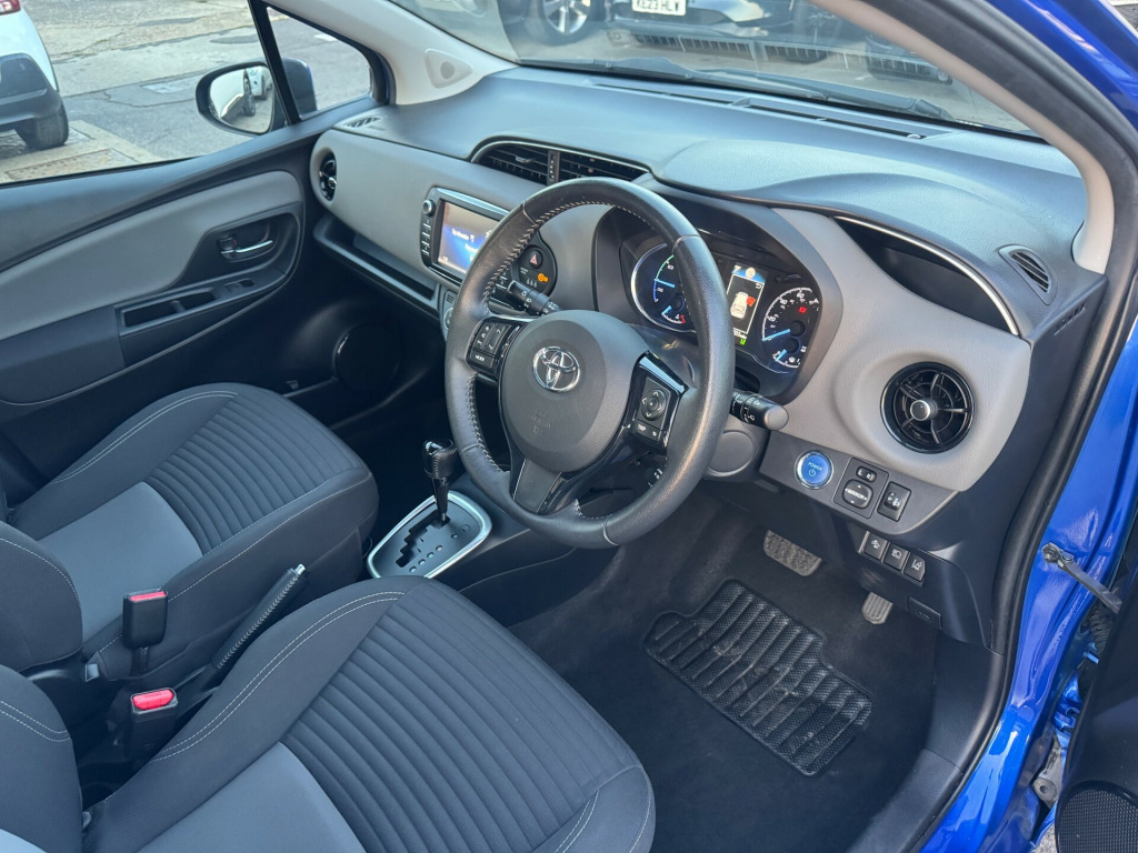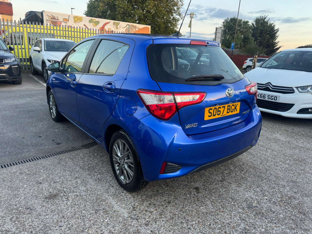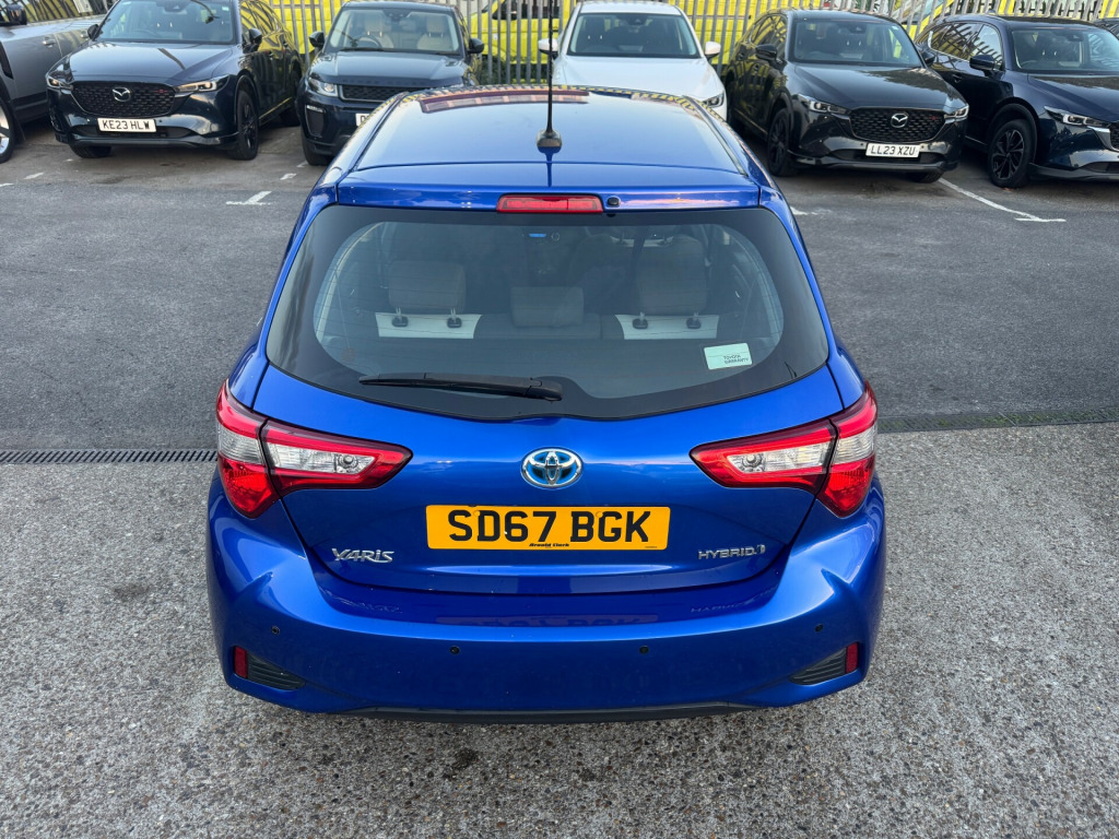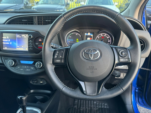 Service History, 2 Previous Owners, ULEZ Free, This 2017 Toyota Yaris 1.5 VVT-h Icon Hatchback, with a mileage of 33,703 miles, is a sleek and efficient vehicle. Powered by a petrol-hybrid engine and equipped with an E-CVT Euro 6 transmission ,1 Key, this hatchback is not only environmentally friendly but also cost-effective. With MOT valid until 08/04/2026, Service History, and ULEZ compliant, it's ready to take you on any urban adventure. This Yaris can easily accommodate five passengers in its spacious interior, and with five doors, access is a breeze. The 15in Alloy Wheels and Body Coloured Door Mirrors add to its stylish look, while features such as Electric and Heated Door Mirrors and Front Power Windows provide convenience and comfort. Don't miss out on the opportunity to own this reliable and economical hatchback., in alloy wheels - 8 double spoke in grey, body coloured door mirrors, door handles - body coloured, electric and heated door mirrors, front power windows, rear window defogger, temporary spare wheel, turning signal integrated in door mirrors, 3-spoke leather steering wheel, 60-40 split-folding - 2nd row - rear seats, audio switches on steering wheel, auto up and down function on drivers window, automatic air conditioning, boot lamp, cruise control switch on steering wheel, driver and front passenger personal lights, front and rear cupholders, headrests - rear height adjustable, illuminated entry system, leather parking brake, manual tilt and telescopic adjustable steering wheel, multi-information display switches on steering wheel, parcel shelf, push button start, rain sensing wipers, seats - drivers height adjustment, 4.2in coloured tft multi-information display, bluetooth connectivity, dab digital radio, front 12v power outlet, speakers x6, toyota touch 2, usb connection, analogue speedometer, cruise control, electric power steering - eps, hybrid system indicator, key reminder warning, lane departure alert, reversing camera, road sign assist, tpms - tyre pressure monitoring system, anti lock braking system - abs with electronic brake-force distribution - ebd, child safety locks on rear doors, driver and front passenger whiplash injury lessening - wil - seats, emergency brake-light signal - ebs - hazard type, front passenger airbag on-off switch, hac - hill start assist control, isofix fixing points, immobiliser, pre-collision system, remote door locking, seat belt - pre-tensioners and force limiters, seat belt reminder - front and rear, supplemental restraint system - srs - airbags - 7 airbags, toyota safety sense, traction control - trc, vsc - vehicle stability control, automatic high beam, daytime running lights, follow me home headlights, front fog lights, headlight cut-off reminder, high mounted rear brake light - led, projector headlights, rear combination lights