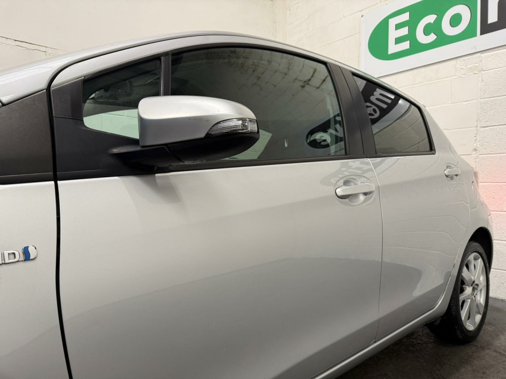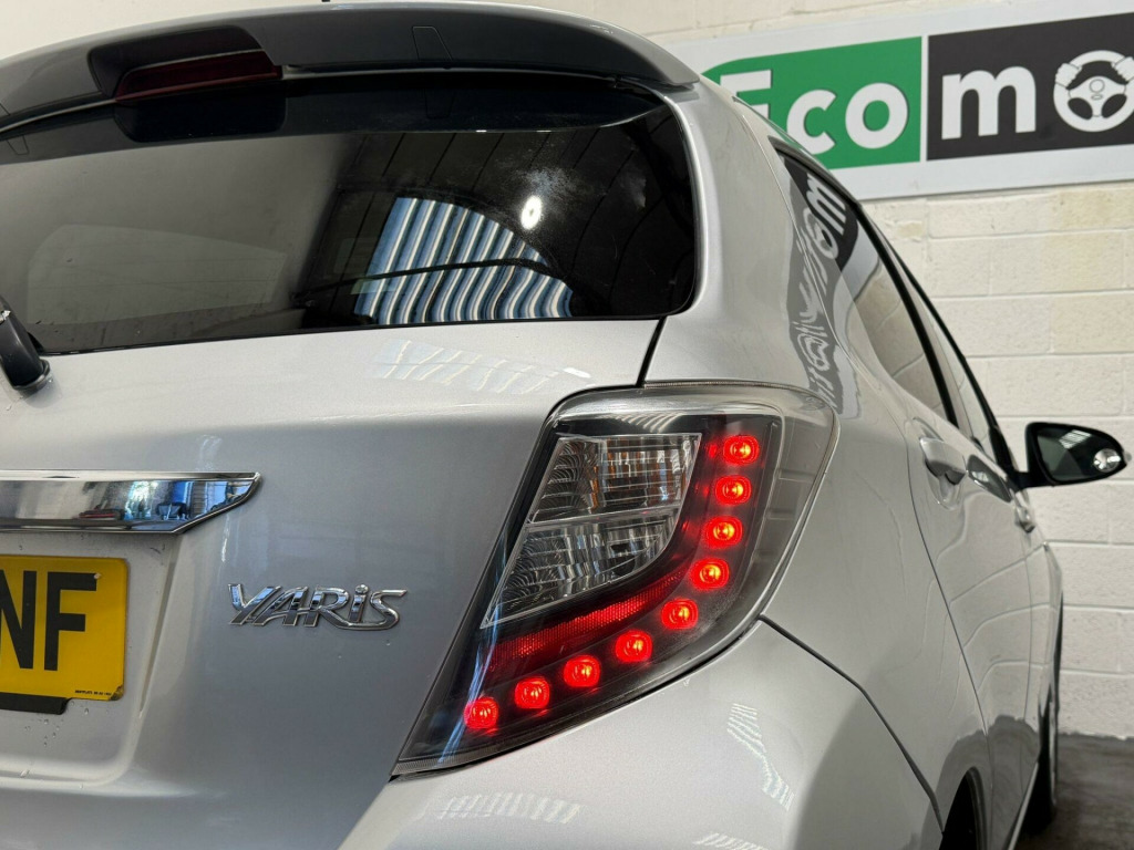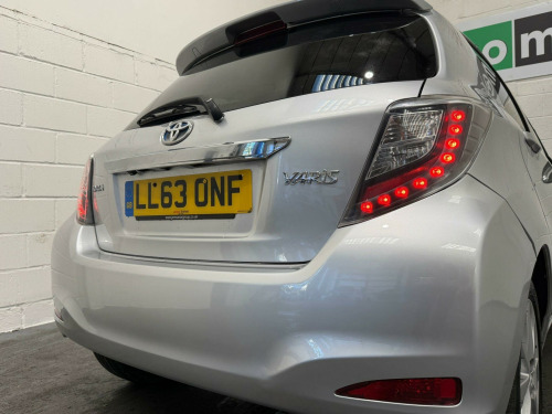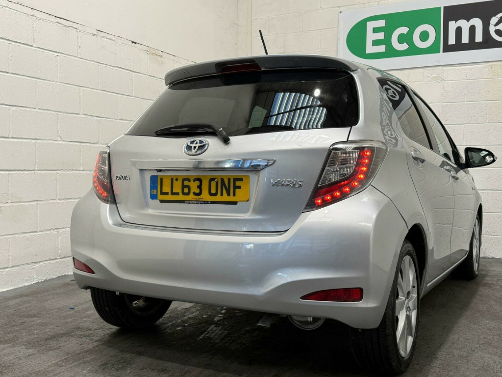 This 2013 Toyota Yaris VVT-h T Spirit presents a superb ownership history, having been cared for by only two owners. This well maintained example features a 1.5 litre petrol hybrid engine, offering an efficient and smooth driving experience. Inside, you'll find dual zone climate control for personalised comfort, and a dusk sensor that automatically activates the headlights. For convenience, this Yaris includes Bluetooth connectivity for handsfree calls and music streaming, a rear view camera to aid parking, and a keyless entry system for effortless access.The highlights of this Toyota Yaris demonstrate its exceptional value. With an impressive fuel economy of 76 miles per gallon, it offers significant savings on running costs compared to many other vehicles. Furthermore, its low CO2 emissions contribute to a lower environmental impact, and it sits in a low insurance group, making it an economical choice for many drivers. These factors combined make this Yaris a particularly sensible and appealing option. v socket, 16in alloy wheels - hybrid, 16in alloy wheels - turbine, abs - anti lock braking system, air conditioning - climate control- dual zone, airbags - curtain, airbags - driver, airbags - driver knee, airbags - front passenger, airbags - front side, assist grips, auto dimming rear view mirror, bas - brake assist system, bluetooth connectivity, bluetooth music streaming, child protection locks, cruise control, cupholders, dab ready, daytime running lights - led, door handles - body coloured, door mirrors - colour keyed with integrated indicators, dusk sensor, ebd - electronic brakeforce distribution, electric power steering - eps, electric windows - front and rear with drivers auto up and down, electric and heated door mirrors, follow me home headlights, foot light, front fog lights, front glovebox - passenger, front wipers with rain sensor, hybrid rear led combi lights, hybrid system indicator, isofix child restraint system - 2nd row, immobiliser and alarm system, keyless entry system, leather handbrake lever, leather parking brake with hybrid stitching, leather steering wheel and gear knob with hybrid stitching, leather steering wheel and gear shift, power assisted steering, radio and cd player with aux in, rain sensing wipers, rear power windows, rear privacy glass, rear seats 60-40 split folding, rear view camera, remote central locking, roof spoiler - colour keyed, seats - anti-whiplash design, seats - drivers height adjustment, smart start, steering wheel - audio controls, sunvisor - driver and passenger with cover and light, tilt and telescopic adjustable steering wheel, tonneau cover - retractable, touch screen - 6.1in, toyota touch audio system, traction control - trc, trip information and vehicle settings, tyre repair kit, usb and aux in, unique hybrid aero front grille, vsc - vehicle stability control, ventilated glovebox, wireless double locking, ipod and mp3 player connectivity and play list management via touch screen