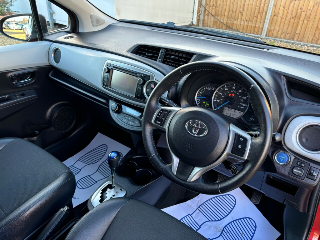 Comes with 1 Year MOT - 6 Month Warranty - Serviced on sale - Finance options are available *** This 2013 Toyota Yaris 1.5 VVT-h T Spirit Hatchback with just 54000 miles on the clock is the perfect combination of performance and efficiency, thanks to its Petrol Hybrid engine. With 5 seats and 5 doors, it offers plenty of space for passengers and cargo, and it's ULEZ compliant, making it an environmentally friendly choice. This stylish hatchback comes with a MOT that expires on 13/02/2026, providing peace of mind for the years ahead. The car is equipped with modern features, including a 12V Socket, Bluetooth Connectivity, Bluetooth Music Streaming, DAB Ready, and a Radio and CD Player with Aux In, ensuring an enjoyable driving experience. Whether you're running errands in the city or embarking on a cross-country road trip, this Toyota Yaris offers a comfortable and reliable ride., We offer 1 Year MOT, 1 Year Warranty & service included on all our stock. Finance is available on all our stock please contact our Office. v socket, bluetooth connectivity, bluetooth music streaming, dab ready, radio and cd player with aux in, touch screen - 6.1in, toyota touch audio system, usb and aux in, ipod and mp3 player connectivity and play list management via touch screen, 16in alloy wheels - hybrid, 16in alloy wheels - turbine, door handles - body coloured, door mirrors - colour keyed with integrated indicators, electric windows - front and rear with drivers auto up and down, electric and heated door mirrors, rear power windows, rear privacy glass, roof spoiler - colour keyed, tyre repair kit, unique hybrid aero front grille, abs - anti lock braking system, airbags - curtain, airbags - driver, airbags - driver knee, airbags - front passenger, airbags - front side, bas - brake assist system, child protection locks, ebd - electronic brakeforce distribution, isofix child restraint system - 2nd row, immobiliser and alarm system, keyless entry system, remote central locking, traction control - trc, vsc - vehicle stability control, wireless double locking, air conditioning - climate control- dual zone, assist grips, auto dimming rear view mirror, cupholders, foot light, front glovebox - passenger, front wipers with rain sensor, leather handbrake lever, leather parking brake with hybrid stitching, leather steering wheel and gear knob with hybrid stitching, leather steering wheel and gear shift, rain sensing wipers, rear seats 60-40 split folding, seats - anti-whiplash design, seats - drivers height adjustment, smart start, steering wheel - audio controls, sunvisor - driver and passenger with cover and light, tilt and telescopic adjustable steering wheel, tonneau cover - retractable, ventilated glovebox, cruise control, electric power steering - eps, hybrid system indicator, power assisted steering, rear view camera, trip information and vehicle settings, daytime running lights - led, dusk sensor, follow me home headlights, front fog lights, hybrid rear led combi lights, 12 months mot, 2 keys, 6 months warranty, service history