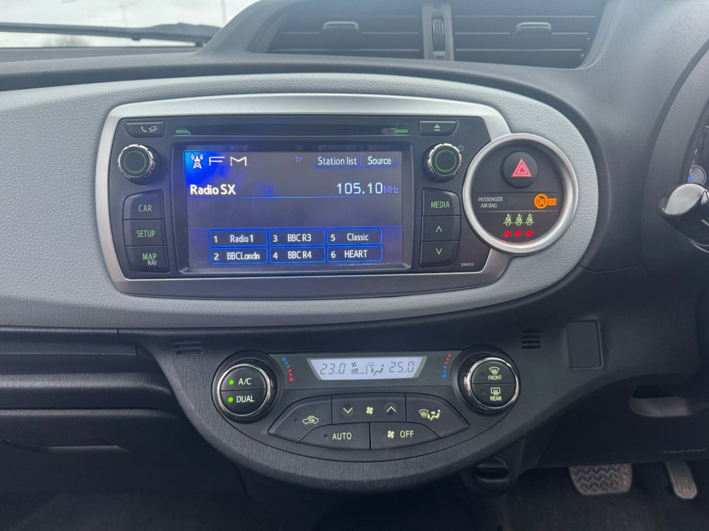 2012 TOYOTA YARIS T SPIRIT, 1.5 PETROL HYBRID AUTOMATIC, £20 ROAD TAX FOR A YEAR, 5 DOORS HATCHBACK, ULEZ COMPLAINTS, SERVICE HISTORY, SERVICED AT, 8K, 14K, 20K, 44K, 55K, 59K, 85K, LONG MOT, 2 REMOTE KEYS, REMOTE CENTRAL LOCKING, SATNAV, REVERSE CAMERA, BLUETOOTH CONNECTIVITY, GLASS PANORAMIC ROOF (very rare), FRONT & REAR PARKING SENSORS, ALL 4 ELECTRIC WINDOWS, ALLOYS, GET 3 MONTHS OF WARRANTY ON US! THIS CAN ALSO BE EXTENDED FOR UP TO 36 MONTHS (BASED ON THE NEEDS OF THE CUSTOMER). THIS VEHIVLE IS HPI CLEARED AND WILL UNDERGO A FULL MECHANICAL INSPECTION IF AND WHERE NEEDED.IF A VEHICLE NEEDS AN MOT, WE SHALL PROVIDE IT AND DO ANY WORK NECESSARY AT OUR OWN EXPENSE, TO ENSURE THAT YOU, THE CUSTOMER, DRIVE AWAY HAPPILY!WE ARE LOCATED IN SHOEBURYNESS SOUTHEND-ON-SEA, ESSEX. WE CAN ARRANGE FOR COMPLIMENTARY COLLECTION FROM ANY TRAIN STATION BASED IN SHOEBURYNESS, IF NEEDED.PLEASE BOOK AN APPOINTMENT AND CONTACT US BEFORE YOU DEPART TO ENSURE THAT THE CAR IS READY FOR VIEWING.IF THERE IS ANYTHING ELSE YOU DESIRE TO KNOW, PLEASE FEEL FREE TO GET IN TOUCH FOR MORE INFORMATION. r conditioning, bluetooth connection, climate control, colour satnav, comms pack, dual climate zones, half leather, panoramic sunroof, satellite navigation, xenon headlamps, adjustable steering column, cruise control, esp, front parking sensor, parking sensors, power steering, rear parking sensor, steering wheel reach adjustment, traction control, abs, air bag, isofix child seat anchor points, multiple airbags, passenger airbag, side air bags, tyre pressure monitor, alarm, central locking, immobiliser, locking wheel nuts, privacy glass, remote central locking, automatic electric windows, electric front windows, heated door mirrors, rear electric windows, media storage, radio, front armrest