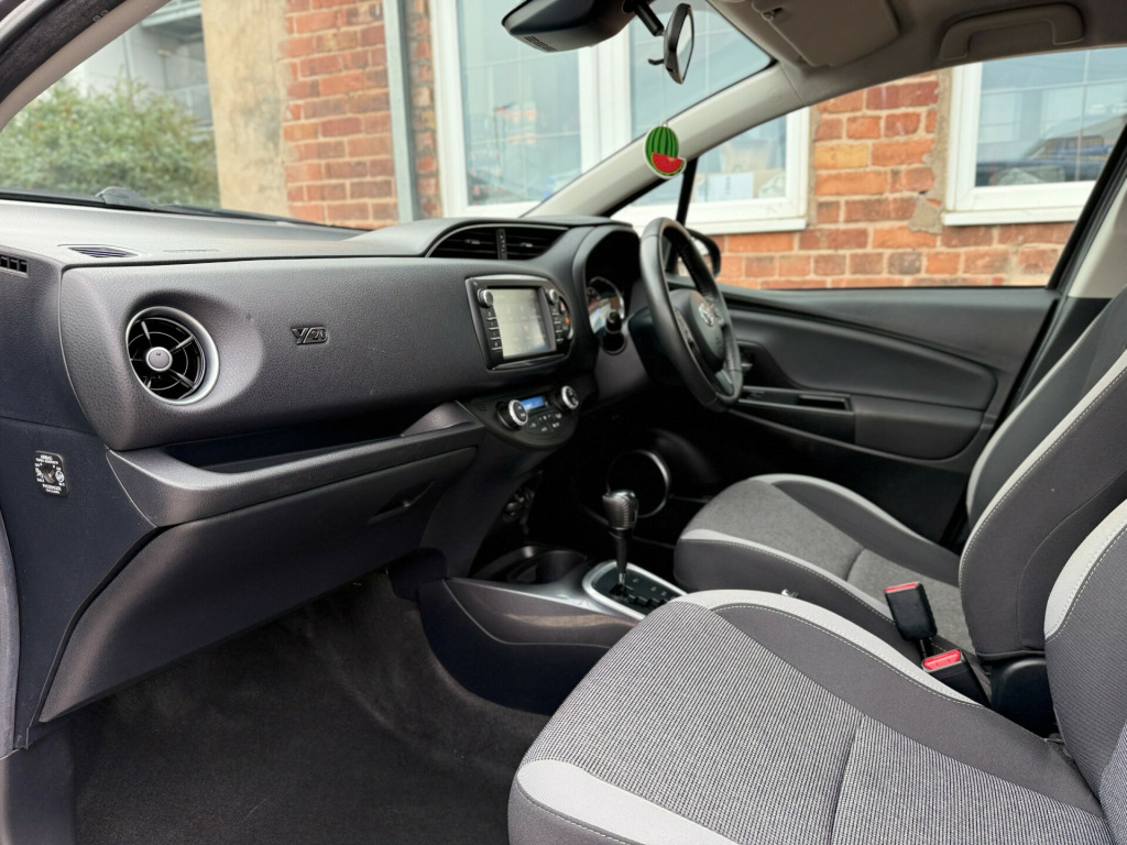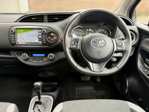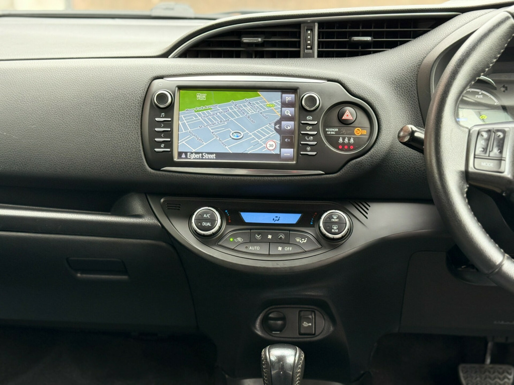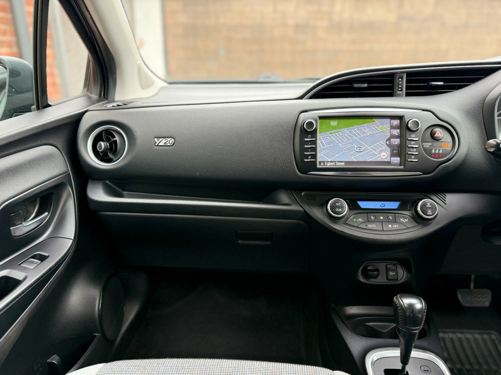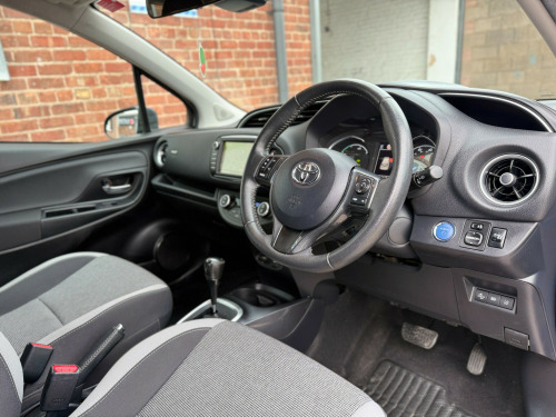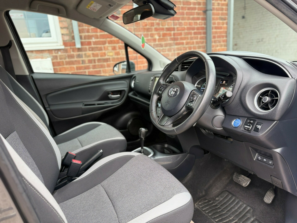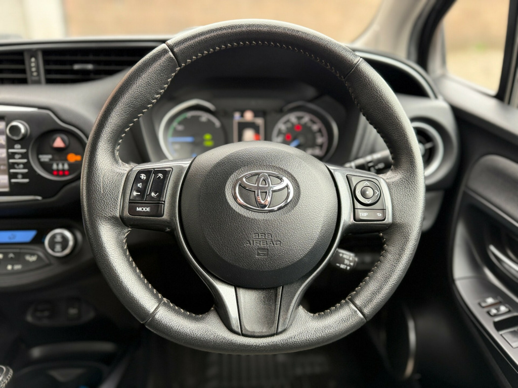 Clean Toyota Yaris Hybrid with 46k miles, full service history (4 services, inc 3 at Toyota), MOT until Jul 2025 and comes with Toyota (manufacturer) warranty until 55k miles/Jul 2026. (extendable until 2031 or 110k miles - whichever comes first). Category S recorded in April 2023 - driven without any issues since). Features include Sat-Nav, Cruise Control, Bluetooth, Reverse Camera, Lane Departure Assist, Automatic High Beam Assist, Pre-Crash Safety Alert, Alloy Wheels, Air-Conditioning, Radio/CD/MP3 Player, USB Connection, Bluetooth Player, DAB Tuner, Electric Windows and Mirrors, etc.,  in alloy wheels - grey machined, bi-tone colour for door mirrors, black lower front grille, c pillar decal, electric and heated door mirrors, front power windows, grey bi-tone roof, grey door side sill, grey front grille and fogs, interior - exterior y20 badging, rear privacy glass, space saver spare wheel, turning signal integrated in door mirrors, 3-spoke leather steering wheel, active headrests, audio switches on steering wheel, auto up and down function on drivers window, dual-zone automatic air conditioning, front and rear cupholders, glovebox, leather gear shift, leather parking brake, manual rear view mirror, map pocket, pollen filter, push button start, rain sensing wipers, rear headrests x3, satin interior accents, seats - drivers height adjustment, seats - sliding front, soft touch inner door garnish, soft-touch instrument panel, abs - anti lock braking system, emergency brake-light signal - ebs - hazard type, front passenger airbag on-off switch, hac - hill start assist control, isofix fixing points, immobiliser, power and remote door locking, seat belt reminder - front and rear, supplemental restraint system - srs - airbags - 7 airbags, toyota safety sense, vsc - vehicle stability control, bluetooth connectivity, dab digital radio, speakers x6, tft colour display, toyota touch 2, cruise control, data communication module, hybrid energy display, power steering, reversing camera, tpms - tyre pressure monitoring system, daytime running lights, follow me home headlights, front fog lights, high mounted rear brake light - led, projector headlights, rear combination lights