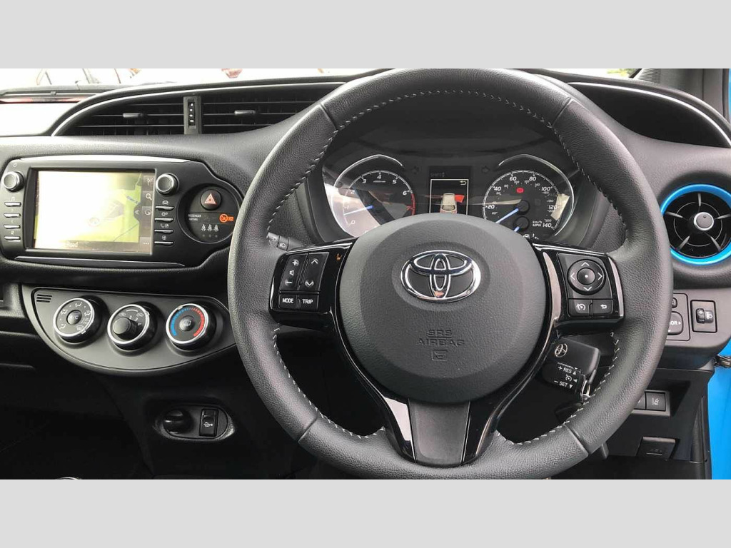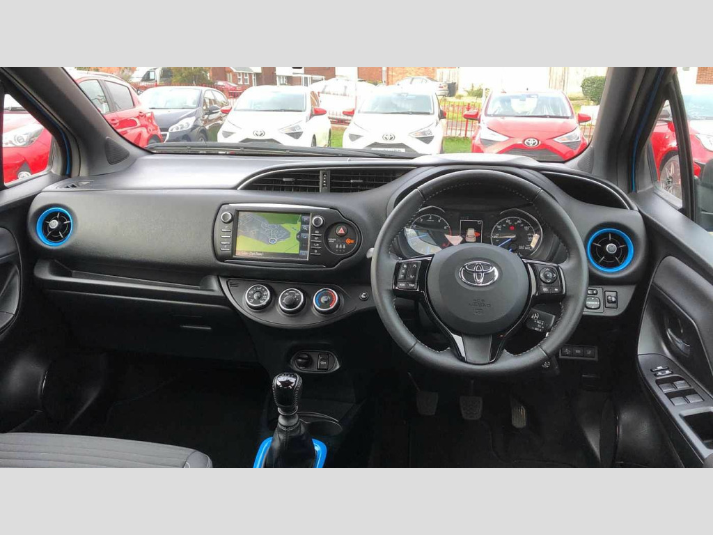 This 2018 Toyota Yaris 1.5 VVT-i ( 111bhp ) ( Navi ) 2018.5MY Blue Bi-Tone Hatchback is currently available for £13,399 in Wrexham Wrexham with Petrol engine and Manual gearbox. For more information or to arrange a viewing, click here to send us an email using form below.