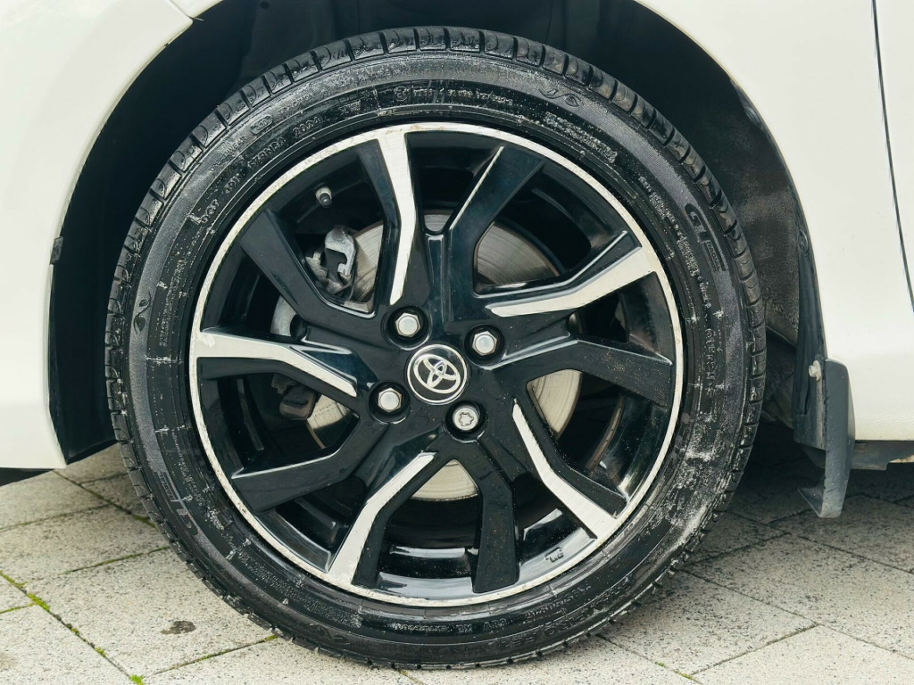 in alloy wheels - machined, chrome surrounds on front fog lights, front power windows, honeycomb lower front grille, piano black side moulding, rear privacy glass, rear spoiler, side sills - piano black, space saver spare wheel, 3-spoke leather steering wheel, active headrests, air conditioning, audio switches on steering wheel, auto up and down function on drivers window, front and rear cupholders, glovebox, leather gear shift, leather parking brake, manual rear view mirror, rain sensing wipers, rear headrests x3, seats - drivers height adjustment, seats - sliding front, soft touch inner door garnish, soft-touch instrument panel, abs - anti lock braking system, emergency brake-light signal - ebs - hazard type, front passenger airbag on-off switch, hac - hill start assist control, isofix fixing points, immobiliser, remote door locking, seat belt reminder - front and rear, supplemental restraint system - srs - airbags - 7 airbags, toyota safety sense, vsc - vehicle stability control, bluetooth connectivity, dab digital radio, speakers x6, tft colour display, toyota touch 2, cruise control, electric power steering - eps, reversing camera, tpms - tyre pressure monitoring system, daytime running lights, follow me home headlights, front fog lights, high mounted rear brake light - led, projector headlights, rear combination lights