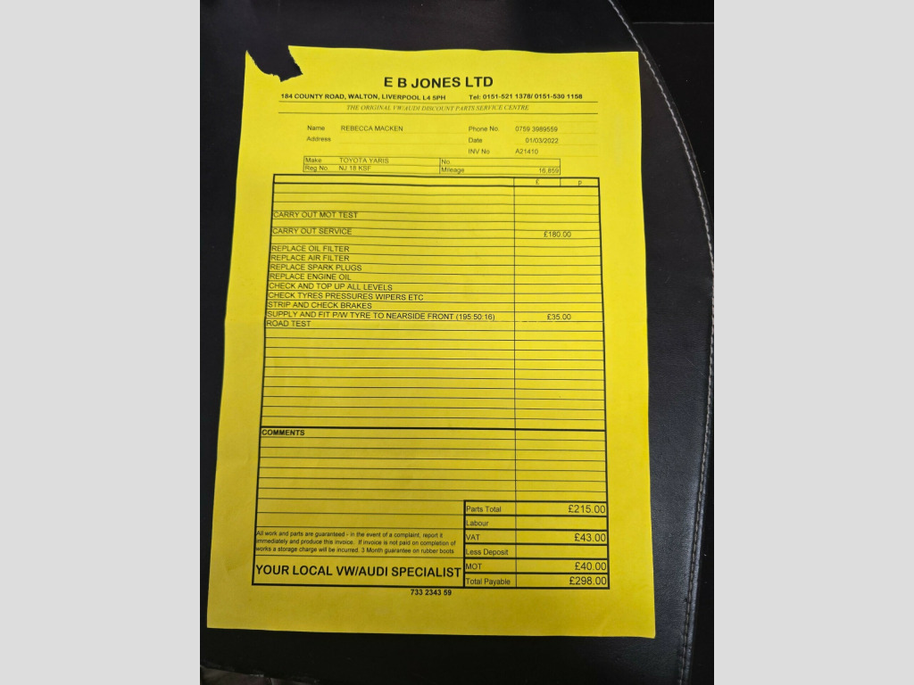 Discover this 2018 Toyota Yaris VVT-i Excel, a well maintained example that offers an excellent blend of style and practicality. This Euro 6 compliant model is powered by an efficient 1.5 litre petrol engine and boasts the refined Excel trim. Inside, you'll find comfortable seating with passenger height adjustment and a clear analogue tachometer. The exterior is enhanced by stylish 16 inch alloy wheels, and the driving experience is made more convenient with an adjustable speed limiter switch on the steering wheel and automatic air conditioning for perfect climate control.This Toyota Yaris stands out with its impressive fuel economy, achieving a remarkable 54 miles per gallon, which indicates it is more economical than many other vehicles in its class. Furthermore, its low insurance group rating suggests that running costs will be kept to a minimum. The low CO2 emissions also highlight its environmental consideration, making it a sensible choice for the modern driver.. 16in Alloy Wheels - 5 Double-Spoke, 3-Spoke Leather Steering Wheel, 4.2in Coloured TFT Multi-Information Display, 60-40 Split-Folding - 2nd Row - Rear Seats, Adjustable Speed Limiter -ASL- Switch on Steering Wheel, Analogue Speedometer, Analogue Tachometer, Anti Lock Braking System - ABS with Electronic Brake-Force Distribution - EBD, Audio Switches on Steering Wheel, Auto Dimming Rear View Mirror, Auto Headlights, Auto Up and Down Function on Drivers Window, Automatic Air Conditioning, Automatic High Beam, Bluetooth Connectivity, Body Coloured Door Mirrors, Boot Lamp, Child Safety Locks on Rear Doors, Cruise Control, Cruise Control Switch on Steering Wheel, DAB Digital Radio, Daytime Running Lights - LED, Door Handles - Body Coloured, Driver and Front Passenger Personal Lights, Driver and Front Passenger Whiplash Injury Lessening - WIL - Seats, Electric Power Steering - EPS, Electric and Heated Door Mirrors, Emergency Brake-Light Signal - EBS - Hazard Type, Follow Me Home Headlights, Front 12V Power Outlet, Front Fog Lights, Front Passenger Airbag On-Off Switch, Front Power Windows, Front and Rear Cupholders, Glovebox with Cooler, HAC - Hill Start Assist Control, Headlight Cut-Off Reminder, Headrests - Rear Height Adjustable, High Mounted Rear Brake Light - LED, ISOFIX Fixing Points, Illuminated Entry System, Immobiliser, Key Reminder Warning, LED Rear Brake Lights, LED Rear Combination Lights, Lane Departure Alert, Leather Parking Brake, Manual Tilt and Telescopic Adjustable Steering Wheel, Multi-Information Display Switches on Steering Wheel, Parcel Shelf, Pre-Collision System, Projector Headlights, Rain Sensing Wipers, Rear Power Windows, Rear Privacy Glass, Rear Spoiler, Rear Window Defogger, Remote Door Locking, Reversing Camera, Road Sign Assist, Seat Belt - Pre-Tensioners and Force Limiters, Seat Belt Reminder - Front and Rear, Seats - Drivers Height Adjustment, Seats - Passengers Height Adjustment, Speakers x6, Supplemental Restraint System - SRS - Airbags - 7 Airbags, TPMS - Tyre Pressure Monitoring System, Temporary Spare Wheel, Toyota Safety Sense, Toyota Touch 2, Traction Control - TRC, Turning Signal Integrated in Door Mirrors, USB Connection, VSC - Vehicle Stability Control.