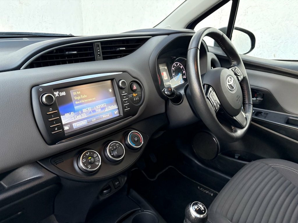 ONLY 1 OWNER FROM NEW, THIS LOW MILEAGE AND WELL PRESENTED TOYOTA YARIS FINISHED IN BLUE METALLIC. COMES WITH GREAT SERVICE HISTORY, 2 KEYS AND A NEW MOT. FEATURES INCLUDE, AIR CONDITIONING, BLUETOOTH HANDS-FREE, TOUCHSCREEN DAB DIGITAL RADIO WITH USB POINT, BLUETOOTH MEDIA CONNECTIVITY, REVERSING CAMERA, MULTI FUNCTION LEATHER STEERING WHEEL, CRUISE CONTROL, ELECTRIC WINDOWS, ELECTRIC MIRRORS, LANE ASSIT, DRIVERS HEIGHT ADJUSTER, REMOTE CENTRAL LOCKING, 6 SPEED MANUAL GEARBOX AND 15" ALLOY WHEELS. *** EXACT MILEAGE - 41,723 *** 15in Alloy Wheels - 8 Double Spoke in Gr, 3-Spoke Leather Steering Wheel, 4.2in Coloured TFT Multi-Information Dis, 60-40 Split-Folding - 2nd Row - Rear Sea, Adjustable Speed Limiter -ASL- Switch on, Analogue Speedometer, Analogue Tachometer, Anti Lock Braking System - ABS with Elec, Audio Switches on Steering Wheel, Auto Up and Down Function on Drivers Win, Automatic High Beam, Bluetooth Connectivity, Body Coloured Door Mirrors, Boot Lamp, Child Safety Locks on Rear Doors, Cruise Control, Cruise Control Switch on Steering Wheel, DAB Digital Radio, Daytime Running Lights, Door Handles - Body Coloured, Driver and Front Passenger Personal Ligh, Driver and Front Passenger Whiplash Inju, Electri