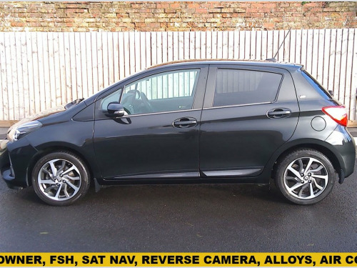 This is a stunning Toyota Yaris 1.5 VVTi Bi-Tone Y20 finished in Black Metallic with complementary two tone grey cloth interior and has covered 37,100 miles, complete with full Service History and only 1 owner from new. It has been both well looked after and maintained and has a good level of specification including Two tone Alloy Wheels, Cruise control, Air Conditioning, Reverse Camera, Satellite Navigation with DAB Radio and Bluetooth. It is HPI checked clear and has a service/handbook pack and two remote locking keys. Our advertised price includes a further full service, 12 months MOT and a 6 month warranty for complete peace of mind. This Yaris is excellent to drive and is both comfortable and stylish. We are happy to take your part exchange and we guarantee to offer the best price possible for your car. Thinking about car finance? we deal with leading companies to find the best deal for you. With a simple, straight forward application, please ask us for a quotation to see how affordable this car could be. The car is here at the showroom and available to view and test drive. We have flexible opening hours and so please do give us a call to arrange a convenient time for you. We look forward to hearing from you. Black Metallic., Y20 Fabric - Black-Grey, 16in Alloy Wheels - Grey Machined, Toyota Touch 2 with Go Navigation, DAB Digital Radio, Cruise Control, Reversing Camera, Space Saver Spare Wheel, TFT Colour Display, Bluetooth Connectivity, Front Fog Lights, Rain Sensing Wipers, Rear Privacy Glass, Soft-Touch Instrument Panel, Power Steering, HAC - Hill Start Assist Control, Electric and Heated Door Mirrors, Active Headrests, Audio Switches on Steering Wheel, Auto Up and Down Function on Drivers Win, Bi-Tone Colour for Door Mirrors, Black Lower Front Grille, C Pillar Decal, Data Communication Module, Daytime Running Lights, Emergency Brake-Light Signal - EBS - Haz, Follow Me Home Headlights, Front