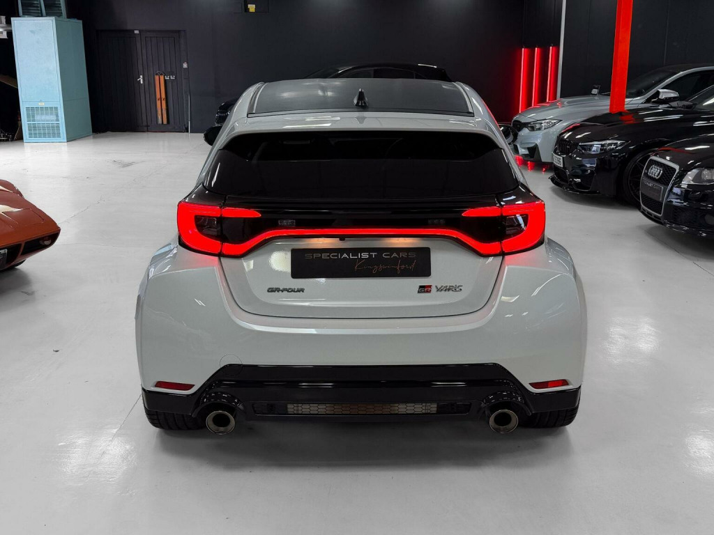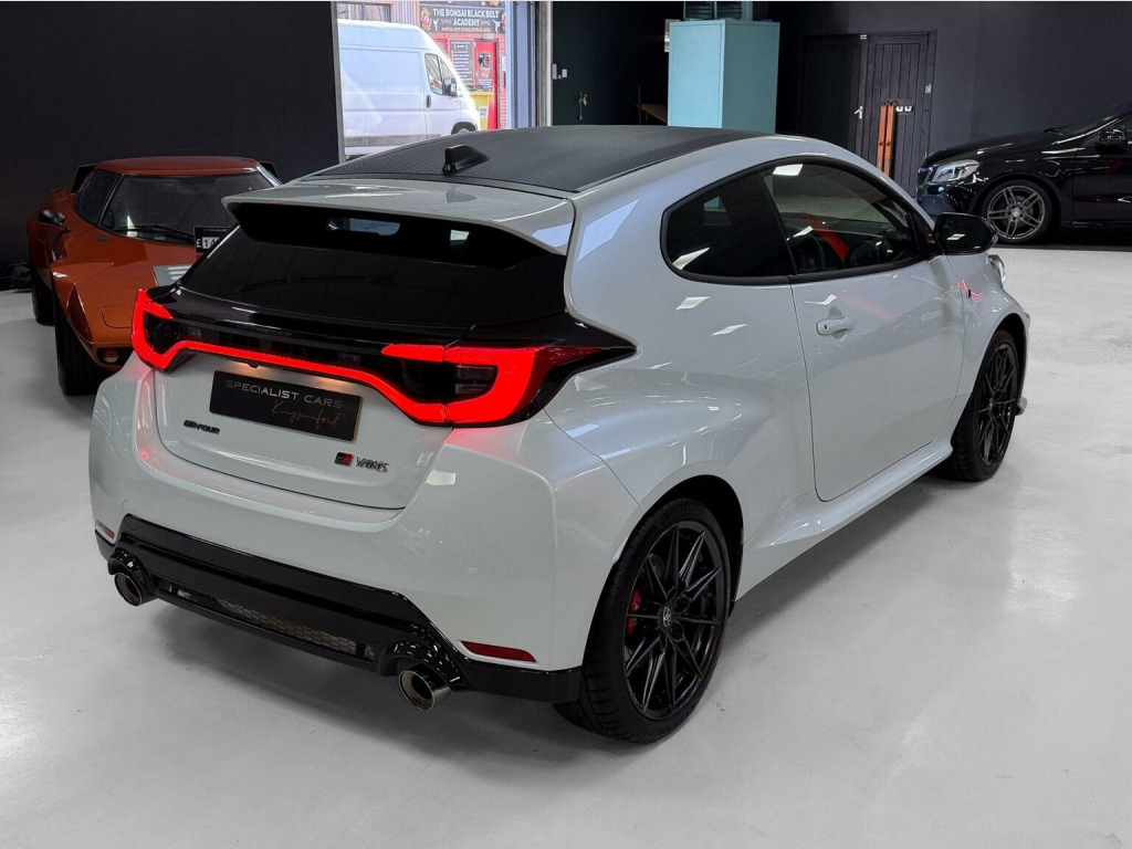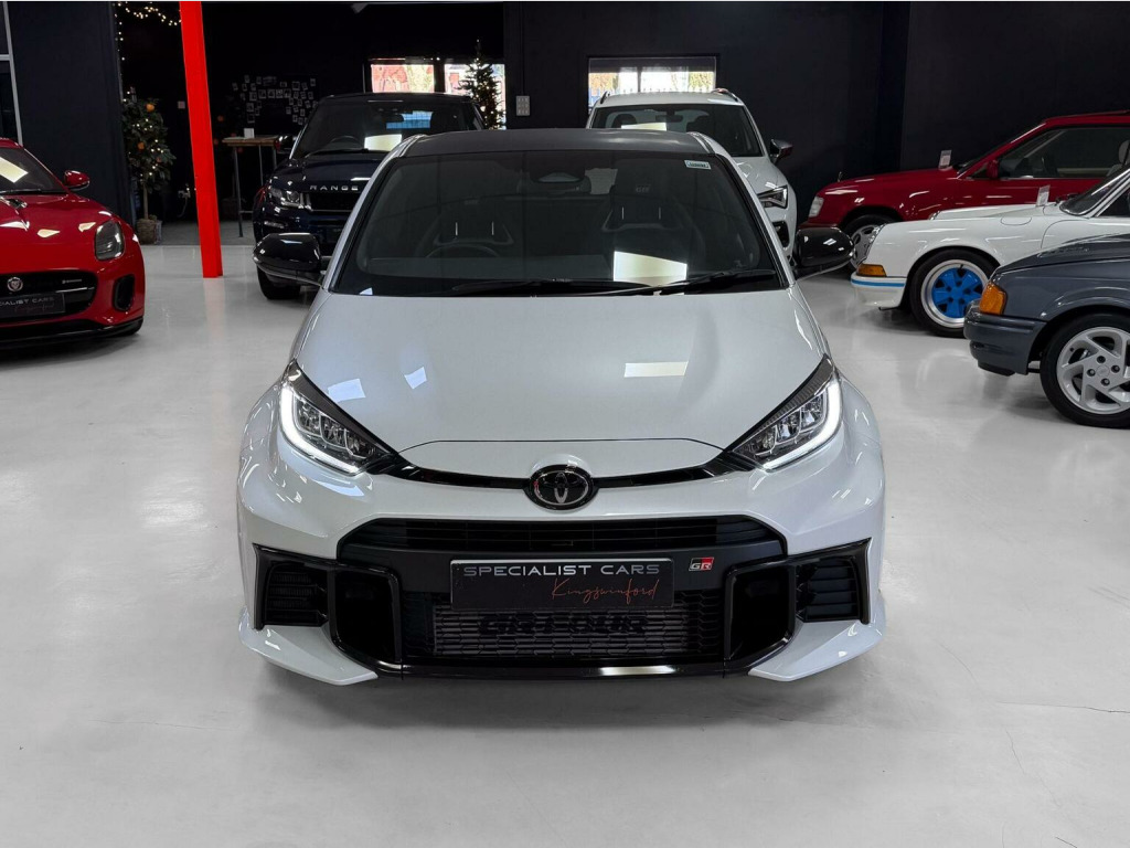 This 2024 GR Yaris is the sought-after facelift model, the one enthusiasts have been waiting for. It comes with the updated 1.6-litre turbo engine pushing out more power and torque, sharper handling from the strengthened chassis, and the revised driver-focused interior that completely transforms the feel behind the wheel. Finished with the optional GR Black Ultrasuede seats, the cabin still smells like a brand-new car and the whole package feels every bit as special as the limited-availability reputation suggests. Its a proper drivers machine, with the GR-FOUR all-wheel-drive system and rally-bred engineering that continues to keep these cars in demand and holding their value better than most hot hatches. This example has full Toyota service history and still carries the factory warranty until September 2027. Even better, Toyotas service-activated warranty scheme means that if you continue servicing at Toyota, the cover can be extended by a full year or ten thousand miles with every service, for up to ten years in total. Its rare to find a car that delivers this blend of performance, modern tech, build quality, and long-term backing from the manufacturer. A genuinely impressive, limited-supply hot hatch that offers serious capability, superb reliability prospects, and an ownership experience built around proper enthusiast driving.