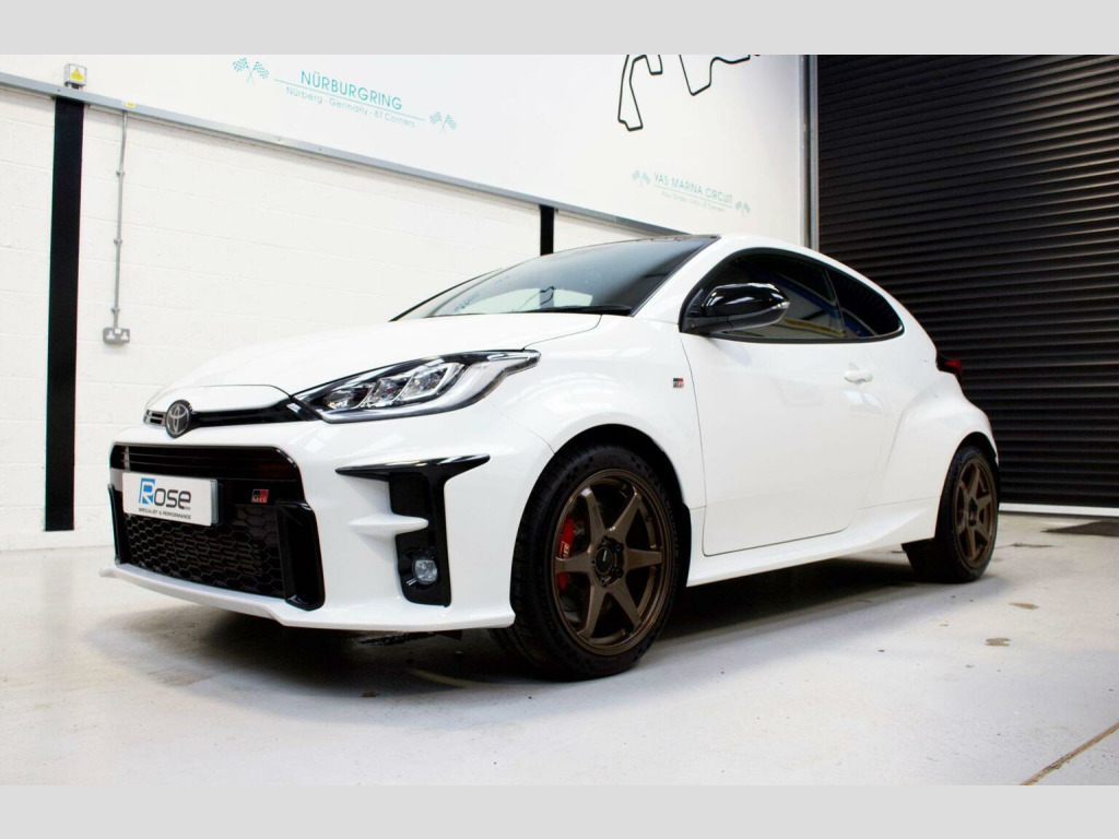 Rose Specialist & Performance are please to offer this stunning 2021 Toyota GR Yaris Circuit. A low mileage example having covered just 12,800 Miles, benefitting from full Toyota Service History and in absolutely pristine condition throughout this really is a beautiful example. || Service History Portfolio: 2,470 Miles at a Toyota Main Dealer, 5,830 Miles at a Toyota Main Dealer, 1,133 Miles at a Toyota Main Dealer, 1,567 Miles at a Toyota Main Dealer, 9,254 Miles at a Toyota Main Dealer, 12,327 Miles at a Toyota Main Dealer on the 26/11/2025 (Major Service including Transfer Box, Gearbox and rear differential) || A brilliant example throughout and benefiting from a set of Enkei TR6 Wheels finished in bronze, Cat/GPF back HKS Super Turbo Muffler Exhaust, SW Motorsport Seat Lowering Subframe (Maintains forward, back and height adjustment), Rear View mirror lowering kit, Bespoke Forged Carbon mud guards (to match forged carbon roof), Forged Carbon roof exposed.. a beautiful unique example, maintained on time by Toyota main agents meaning the extended 7 year warranty is still valid for complete peace of mind. Enthusiast owned in stunning condition throughout, do not miss this lovely example.||Supplied with two keys, 12 Months MOT and the balance of manufacturers warranty. All of our vehicles are HPI Clear, put through a full mechanical inspection and treated to a full in-house detail before sale, giving our customers confidence they are getting a vehicle of the highest standards. || Viewings by prior appointment. || Please call: 01844 202100