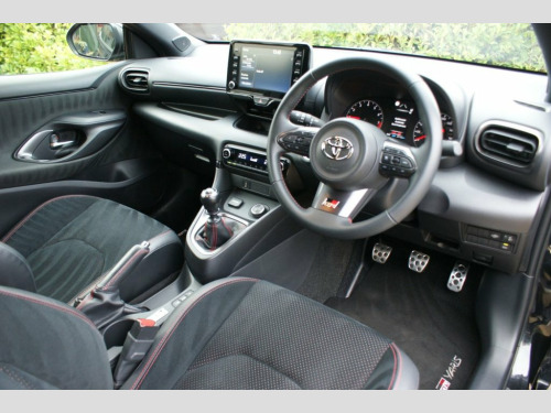 2021/71 Toyota Yaris 1.6T GR Circuit finished in precious black metallic with GR ultrasuede interior. Two owners from new with full Toyota main dealer service history and still carries the balance of its manufacturers warranty. Spec includes 18 inch forged alloy wheels, matching Michelin pilot sports 4S tyres, red brake callipers, LED headlights with auto high beam assist, privacy glass, reversing camera, electric folding door mirrors, carbon fibre style roof, JBL speaker upgrade, Apple Car Play, DAB radio, USB connection, bluetooth, dual zone climate control, cruise control, multi-function steering wheel, lane departure warning, voice control, aluminium foot pedals, GR aluminium sill strips, auto dimming mirrors, sport/track modes and GR floor mats. Full Toyota service history having been serviced every 6 months initially then annually as required by Toyota and has recently had a major service inc front and rear diff oil changes. The car has also had a 3 year ceramic coating so the paintwork is pristine throughout. 12V Power Socket - Front, 18in Alloy Wheels - BBS Forged 10-Spoke, 3-Spoke Leather Sports Steering Wheel, ABS - Anti Lock Braking System, Active Noise Control, Adaptive Automatic High Beam, Adaptive LED Headlights, Aluminium Pedals, Audio Switches on Steering Wheel, Auto Headlights, Auto Up and Down Function on Drivers Win, Automatic Headlight Cut-Off, Automatically Retractable Door Mirrors, BA - Brake Assist, Black Bi-Tone Roof, Black Door Moulding, Black Rear Spoiler, Black Style Headlights, Bluetooth Connectivity, Body-Coloured Rear Bumper, Carbon Fibre Roof Wrap, Circuit-tuned GR Suspension, DAB Digital Radio, Data Communication Module, Daytime Running Lights - LED, Door Handles - Body C