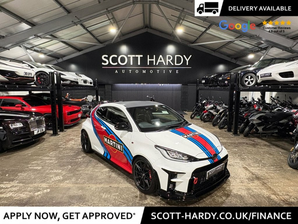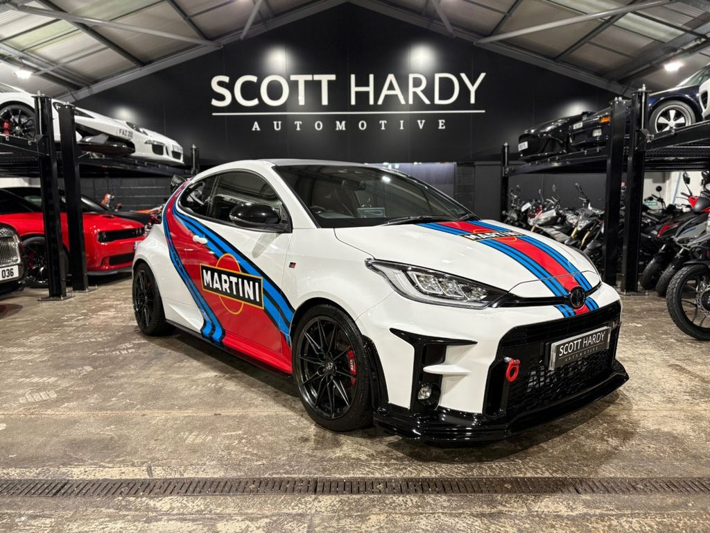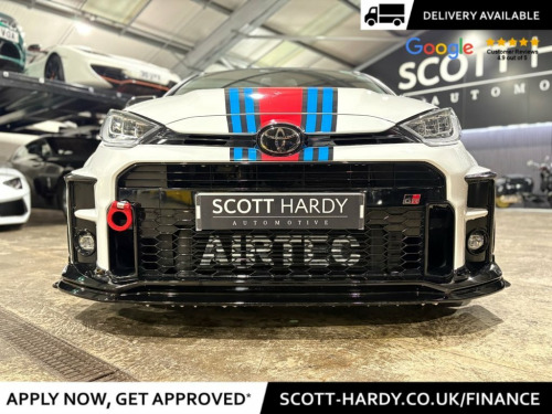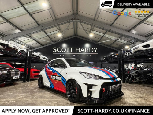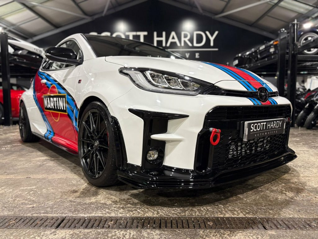 Scott Hardy Automotive are proud to present this exceptional TOYOTA YARIS 1.6T GR Circuit Finished in MARTINI RALLY LIVERY- Ohlins Suspension road and track coil over- Akrapovic titanium (Full System including link pipe)- Spacers- Airtek enclosed CAIS Induction Kit- Collins Performance STAGE 1 Map 350bhp- Toyota TRD body kit front splitter side skirts- Rear spoiler- Airtec intercooler- String theory bolt on wheel spacers. 12V Power Socket - Front, 18in Alloy Wheels - BBS Forged 10-Spoke, 3-Spoke Leather Sports Steering Wheel, ABS - Anti Lock Braking System, Active Noise Control, Adaptive Automatic High Beam, Adaptive LED Headlights, Aluminium Pedals, Audio Switches on Steering Wheel, Auto Headlights, Auto Up and Down Function on Drivers Win, Automatic Headlight Cut-Off, Automatically Retractable Door Mirrors, BA - Brake Assist, Black Bi-Tone Roof, Black Door Moulding, Black Rear Spoiler, Black Style Headlights, Bluetooth Connectivity, Body-Coloured Rear Bumper, Carbon Fibre Roof Wrap, Circuit-tuned GR Suspension, DAB Digital Radio, Data Communication Module, Daytime Running Lights - LED, Door Handles - Body C