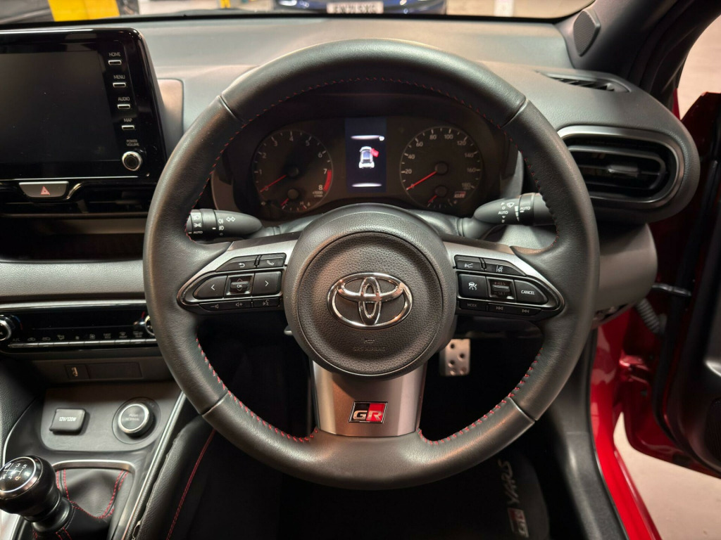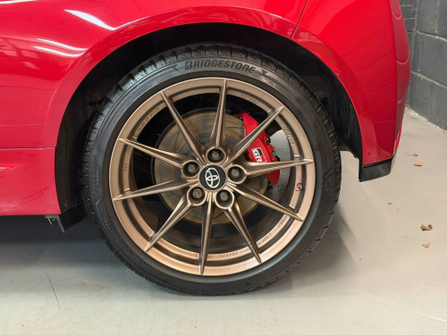 1.6T GR Circuit Factory Options: Black GR Ultrasuede Interior.Standard Specification: 18“ BBS Forged 10-Spoke Alloys, Gloss Black GR Front Bumper, Black Style Headlights, Carbon Fibre Roof Wrap, Black Bi-Tone Roof, Black Door Moulding, Black Door Mirrors, Black Rear Spoiler, Circuit-Tuned GR Suspension, Two Torsen Limited Slip Differentials, Vehicle Stability Control, Active Noise Control, Rear Privacy Glass, Smartphone Integration (Apple Car Play, Android Auto), Smart Entry System, GR 3-Spoke Leather Sports Steering Wheel, Audio Switches on Steering Wheel, 60-40 Split Folding Rear Seats, Reversing Camera, Intelligent Adaptive Cruise Control, Lane Departure Alert, Lane Trace Assist, Toyota Safety Sense, Hill Start Assist Control, Start Holding Control, Dual-Zone Automatic Air Conditioning, Adaptive LED Headlights, Auto Headlights, Adaptive Automatic High Beam, LED Daytime Running Lights, Rear Combination Lights, TFT Colour Display, Toyota Touch 2 Multimedia System with 7” Display, DAB Digital Radio, Bluetooth Connectivity, USB Connection, Door Scuff Plates, Aluminium Pedals, Leather Parking Brake, Red Stitching on Handbrake, Leather Gear Shift, Red Stitching on Gear Shift, Soft-Touch Instrument Panel, Electrochromatic Auto-Dimming Rear View Mirror, Automatically Retractable Door Mirrors, Red Brake Calipers, Dual Exhaust Pipes.Finished in Emotional Red Metallic Paint.This car does not have a panoramic roof.All our cars are HPI clear. Please contact us for your own personal video presentation of this particular car. We offer competitive finance rates with our in-house team from PCP, lease purchase and HP. Whilst we make every effort to ensure that the specification and technical information for the cars on our website is correct, some of it is supplied by third party providers and we cannot guarantee its accuracy. It is therefore important that you do not solely rely on this information.. 18“ BBS Gold Forged 10-Spoke Alloys, Gloss Black GR Front Bumper, Black Style Headlights, Carbon Fibre Roof Wrap, Black Bi-Tone Roof, Black Door Moulding, Black Door Mirrors, Black Rear Spoiler, Circuit-Tuned GR Suspension, Two Torsen Limited Slip Differentials, Vehicle Stability Control, Active Noise Control, Rear Privacy Glass, Smartphone Integration (Apple Car Play, Android Auto), Smart Entry System, GR 3-Spoke Leather Sports Steering Wheel, Audio Switches on Steering Wheel, 60-40 Split Folding Rear Seats, Reversing Camera, Intelligent Adaptive Cruise Control, Lane Departure Alert, Lane Trace Assist, Toyota Safety Sense, Hill Start Assist Control, Start Holding Control, Dual-Zone Automatic Air Conditioning, Adaptive LED Headlights, Auto Headlights, Adaptive Automatic High Beam, LED Daytime Running Lights, Rear Combination Lights, TFT Colour Display, Toyota Touch 2 Multimedia System with 7” Display, DAB Digital Radio, Bluetooth Connectivity, USB Connection, Door Scuff Plates, Aluminium Pedals, Leather Parking Brake, Red Stitching on Handbrake, Leather Gear Shift, Red Stitching on Gear Shift, Soft-Touch Instrument Panel, Electrochromatic Auto-Dimming Rear View Mirror, Automatically Retractable Door Mirrors, Red Brake Calipers, Dual Exhaust Pipes, Black GR Ultrasuede Interior.