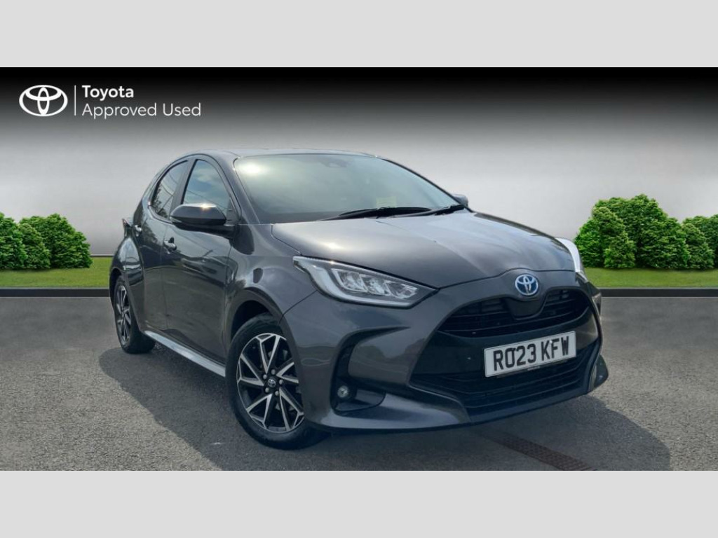 This is a 2023 Toyota Yaris 1.5L Petrol Hybrid in the VVT-h Design trim. As a Toyota manufacturer-approved vehicle, it comes with a 12-month warranty for peace of mind. It has only had one owner and a full service history, with the last service completed in April 2024 at 10,789 miles. This Design trim includes 16-inch Anthracite Machined Faced Alloy Wheels and Automatic Air Conditioning with Climate Control. For enhanced safety, it features Toyota Safety Sense 2, including Adaptive Cruise Control. Smartphone Integration, including Apple CarPlay and Android Auto, is included, along with a Reversing Camera for parking assistance.