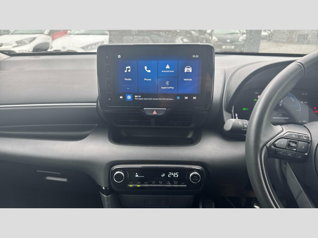 16in Alloy Wheels - Machined Face, 2x Master Key - Flip Out Blade and Remote Operation, 3-Spoke Leather Steering Wheel, 8in Multimedia Screen, ABS - Anti Lock Braking System, Acoustic Windscreen Glass, Active Headrests, Adaptive Cruise Control, Adjustable Speed Limit with Speed Warning, Alarm and Immobiliser, Armrest - Front, Auto Windscreen Wipers, Automatic Air Conditioning, Automatic Headlights, Bluetooth Connectivity, Body Coloured Door Mirrors, Coat Hooks - Rear Grab Handles, Coloured Binocular-Inspired Display with Digital Speedometer, Cup Holders - 2 Front and Door, Data Communication Module, Daytime Running Lights - LED, E-Call, Electric Power Steering - EPS, Electric and Heated Door Mirrors, Electronic Parking Brake, Emergency Brake-Light System - EBS, Follow Me Home Headlights, Front Fog Lights - LED, Front Passenger Airbag On-Off Switch, Front Power Windows with Anti-Jam Function, Full LED Rear Lights, Glovebox, Grey Roof Lining, HAC - Hill Start Assist Control, Height Adjustable Driver Seat, Hybrid Energy Display, ISOFIX Seat Fixing - Rear, LED Front Light Guide, LED Headlights, LED High Level Stop Light, LED Indicators, LED Rear Light Guide, Leather Gear Shift, Manual Headlight Levelling, Painted Front Grille, Pollen Filter, Power Remote Door Locking - Double Locking - Deadlock, Rear Power Windows with Anti-Jam Protection, Rear Privacy Glass, Rear Spoiler, Reversing Camera, Seat Belt Reminder - Front and Rear, Shark Fin Antenna, Shopping Bag Hooks, Smartphone Integration including Apple Car Play and Android Auto, Soft-Touch Instrument Panel, Space Saver Spare Wheel, Speakers x4, Split Folding Rear Seats - 60-40, Steering Wheel Switches, Supplemental Restraint System - SRS with 8 Airbags, TPMS - Tyre Pressure Monitoring System, Tilt and Telescopic Steering Wheel Adjustment, Toyota Safety Sense 2, Toyota Touch 2 Multimedia System with DAB Radio, Turning Signal Integrated in Door Mirrors, USB Connectivity, VSC - Vehicle Stability Control, Voice Recognition
