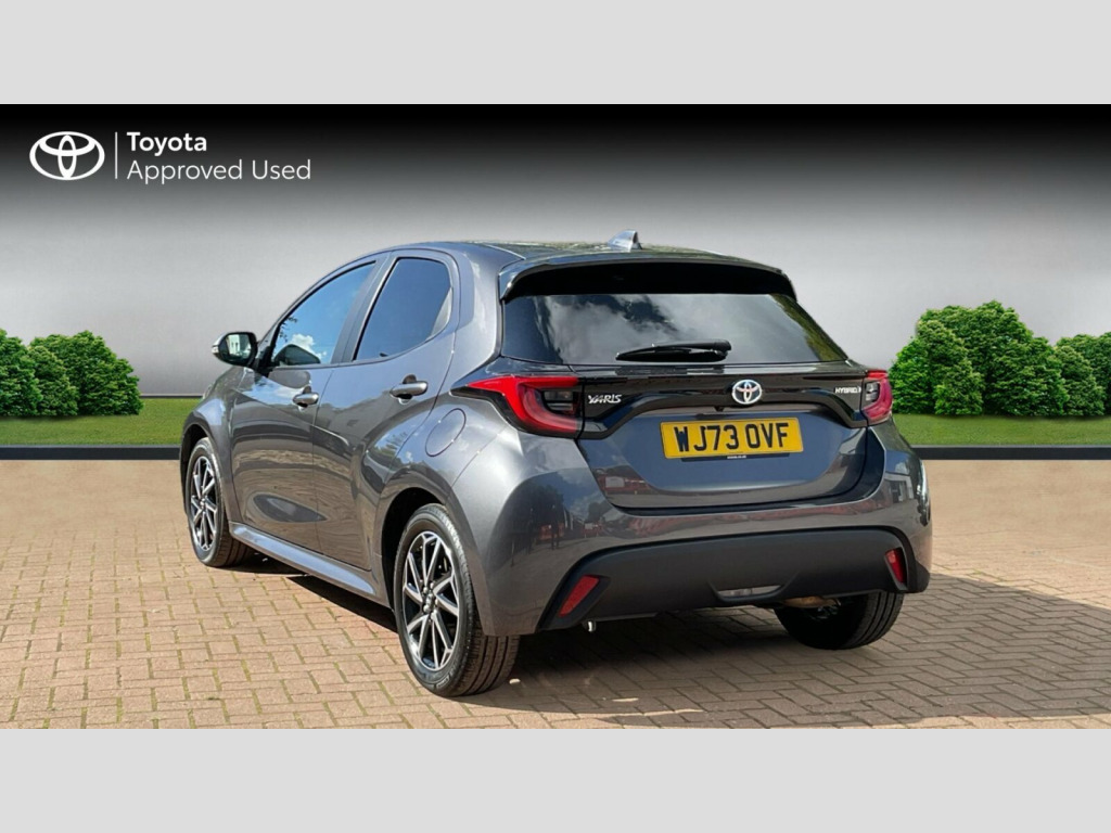 This 2023 Toyota Yaris VVT-h Design is a Toyota manufacturer approved vehicle with an exceptional service history, having had its last service on 2025-09-15 at 8531 miles, which is low mileage for its age. This Euro 6 compliant model boasts a 1.5L Petrol Hybrid engine and comes with a 12 month warranty for your peace of mind. Its MOT is valid until September 2026, ensuring roadworthiness for the foreseeable future.