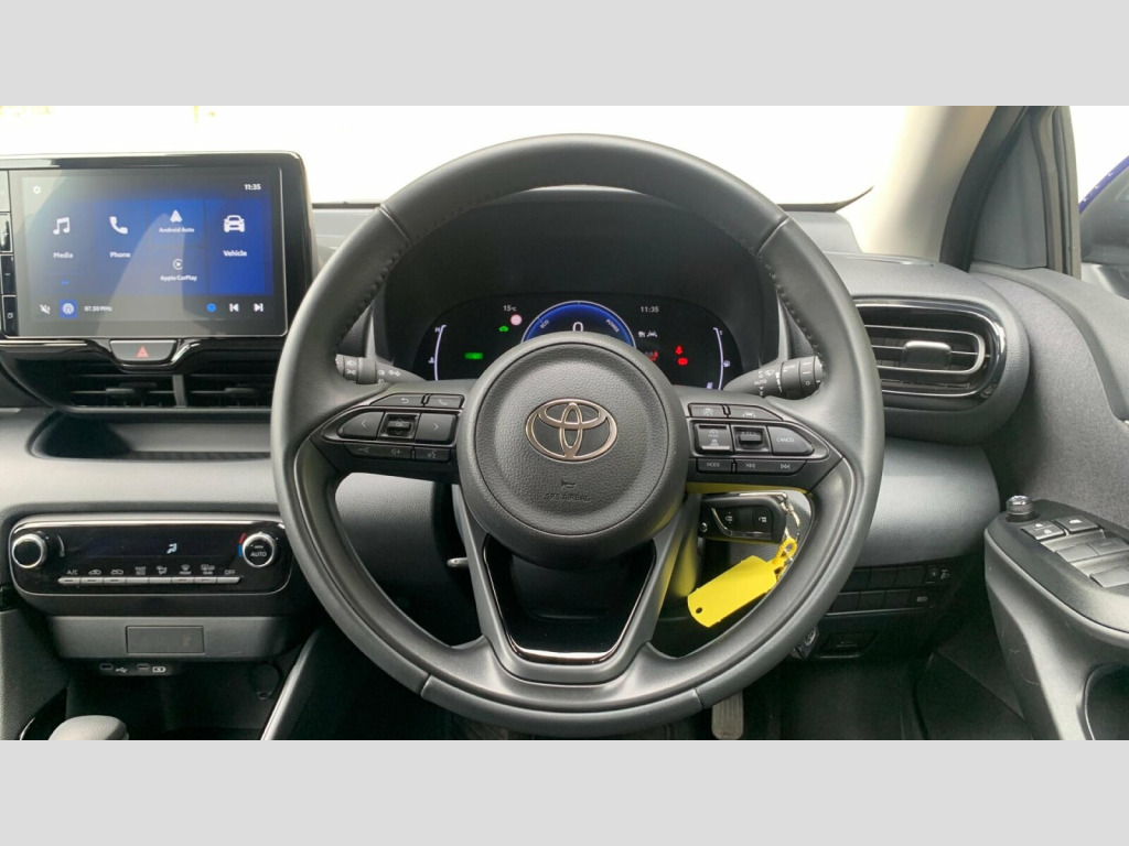 The Yaris Design trim is equipped with a host of desirable features to enhance your driving experience. Enjoy the convenience of automatic headlights, which include an automatic on function, and automatic air conditioning for a comfortable cabin environment. Stay connected and entertained with smartphone integration, featuring both Apple CarPlay and Android Auto. The LED front light guide adds a distinctive touch, while adaptive cruise control with full range capability makes longer journeys more relaxed. These features collectively demonstrate how this Yaris offers a superior driving experience compared to other vehicles in its class.