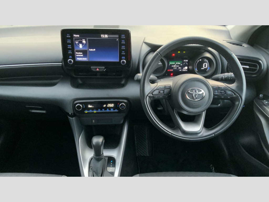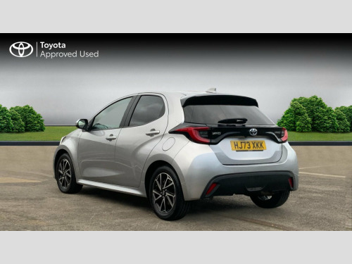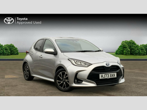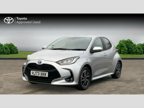 This 2023 Toyota Yaris Hybrid Design is a Toyota manufacturer approved vehicle, boasting a full dealership service history and a single owner from new, ensuring excellent provenance. This Euro 6 compliant model features a 1.5L petrol hybrid engine and comes with a 12 month warranty for your peace of mind. Its MOT is valid until November 2026, and it is equipped with automatic headlights, including LED technology and a front light guide, Bluetooth connectivity for seamless calls and music, and a reversing camera to aid parking.