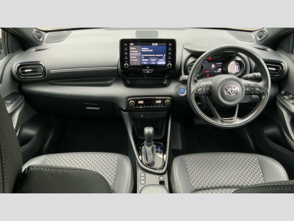 The Yaris Dynamic stands out with its impressive fuel economy, achieving a remarkable 66 mpg, which indicates it is more economical than many other vehicles in its class. Furthermore, its low CO2 emissions highlight its environmentally conscious design. This combination of excellent fuel efficiency and reduced environmental impact makes the Yaris a smart choice for both your wallet and the planet. 17in Alloy Wheels - Anthracite Machined, Decuma Grey, Fabric with Partial Synthetic Leather - Black, Nextbase Front and Rear Dash Cams, 17in Alloy Wheels - Machined Face - 5 Double Spoke, 3-Spoke Leather Steering Wheel, 8in Multimedia Screen, ABS - Anti Lock Braking System, Acoustic Windscreen Glass, Active Headrests, Adjustable Boot Height - Two Level Floor, Adjustable Speed Limit with Speed Warning, Alarm and Immobiliser, Armrest - Front, Auto Windscreen Wipers, Automatic Headlights, Bluetooth Connectivity, Body Coloured Door Mirrors, Coat Hooks - Rear Grab Handles, Coloured Binocular-Inspired Display with Digital Speedometer, Cup Holders - 2 Front and Door, Data Communication Module, Daytime Running Lights - LED, Dual-Zone Automatic Air Conditioning, E-Call, Electric Power Steering - EPS, Electric and Heated Door Mirrors, Electronic Parking Brake, Emergency Brake-Light System - EBS, Follow Me Home Headlights, Front Fog Lights - LED, Front Passenger Airbag On-Off Switch, Front Power Windows with Anti-Jam Function, Full LED Rear Lights, Glovebox, HAC - Hill Start Assist Control, Height Adjustable Driver Seat, Height Adjustable Passenger Seat, Hybrid Energy Display, ISOFIX Seat Fixing - Rear, JBL Premium Sound System with 8 Speakers, LED Headlights, LED High Level Stop Light, Leather Gear Shift, Map Pocket - Back of Passengers Front Seats, Painted Front Grille, Pollen Filter, Power Remote Door Locking - Double Locking - Deadlock, Rear Power Windows with Anti-Jam Protection, Rear Privacy Glass, Rear Spoiler, Reversing Camera, Seat Belt Reminder - Front and Rear, Shark Fin Antenna, Shopping Bag Hooks, Smart Entry and Push-Button Start, Smartphone Integration including Apple Car Play and Android Auto, Soft-Touch Instrument Panel, Space Saver Spare Wheel, Split Folding Rear Seats - 60-40, Sports Seats - Front, Steering Wheel Switches, Supplemental Restraint System - SRS with 8 Airbags, TPMS - Tyre Pressure Monitoring System, Tilt and Telescopic Steering Wheel Adjustment, Toyota Safety Sense 2, Toyota Touch 2 Multimedia System with DAB Radio, Turning Signal Integrated in Door Mirrors, USB Connectivity x3, VSC - Vehicle Stability Control