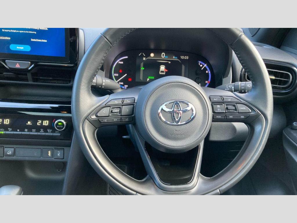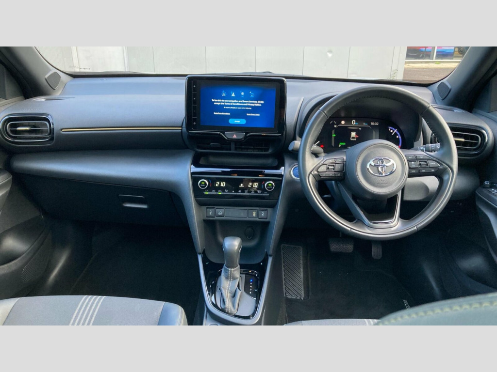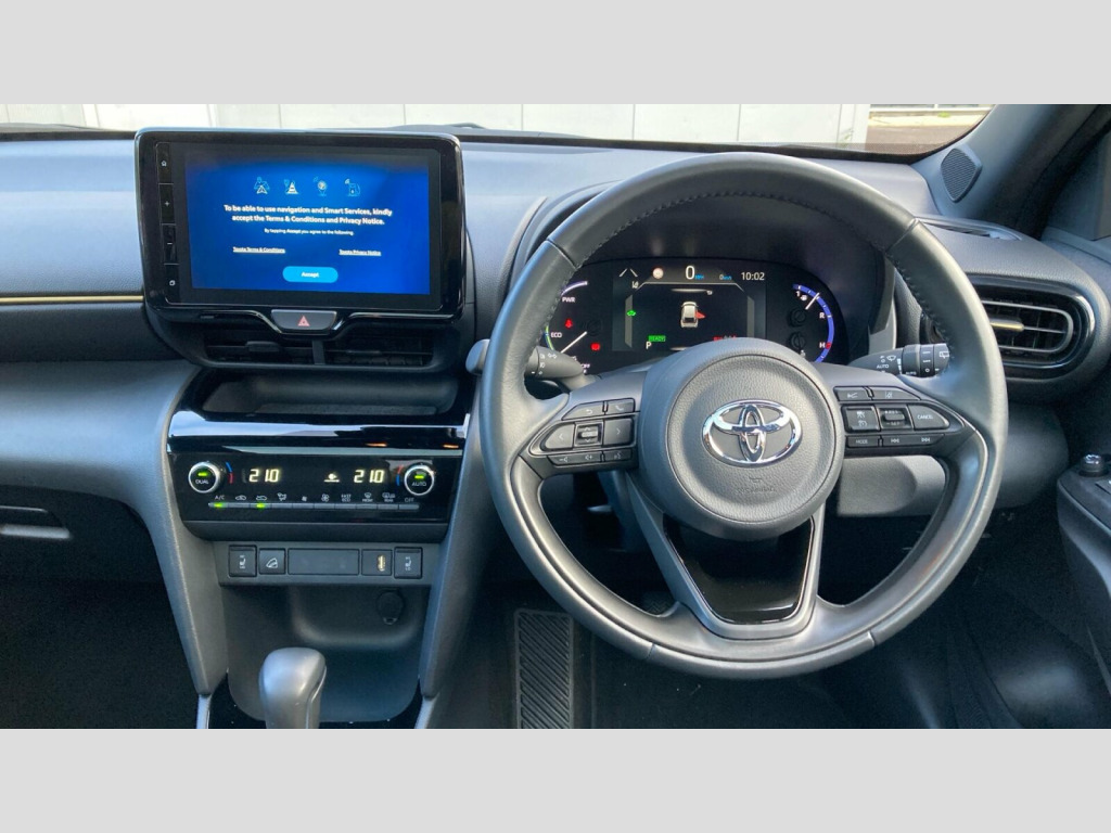 The Yaris Cross Dynamic is designed to be economical and efficient, with a highlighted fuel economy of 55 mpg. Its low CO2 emissions and low insurance group rating indicate that running costs are kept to a minimum, making it a sensible choice compared to similar vehicles. This combination of advanced technology, practical features, and cost effective ownership makes the Toyota Yaris Cross a compelling option. Toyota Skyview Panoramic Roof, 18in Alloy Wheels - 5-Triple-Spoke - Dark Grey, 3-Spoke Leather Steering Wheel, 40-20-40 Split-folding 2nd Row Rear Seats, 7in Multi-Information Display Screen, Airbags - Driver, Airbags - Front Passenger, Airbags - Front Side, Anti Lock Braking System - ABS with Electronic Brake-Force Distribution - EBD, Audio - Multimedia -Telephone and Voice Switches on Steering Wheel, Automatic High Beam, Automatically Retractable Door Mirrors, BAS - Brake Assist System, Bi-tone Black Roof, Black Roof Lining, Blue Ambient Lighting on Front Doors, Bluetooth Connectivity, Boot 12V Power Outlet, DAB Digital Radio, Dark Chrome Insert on Upper Front Grille, Door Handles - Body Coloured, Driver Attention Alert, Driver and Passenger Central Airbag, Drivers Glove Box, Dual-Zone Automatic Air Conditioning, EBS - Emergency Brake Signal, Electrochromatic Auto-Dimming Rear View Mirror, Electronic Parking Brake, Essential Protection Pack, Follow Me Home Headlights, Front 12V Power Outlet, Front Console Box, Front Cup Holders, Front LED Light Guide, Front and Rear Power Windows with Auto Up-Down, Gloss Black Upper Front Grille, Headlights - Automatic On, Heated Driver and Front Passenger Seat, Hooks for Luggage Holding Belt, Intelligent Adaptive Cruise Control, LED Daytime Running Lights with LED Light Guide, LED Front Fog Lights, LED Projector Headlights, LED Rear Lights with Sequential Indicators, Lane Trace Assist, Leather Gear Shift Knob, Light Blue Ambient Lighting in Centre Console, Light Blue Ambient Lighting in Footwell, Light and Mirror on Driver and Front Passenger Sun Visors, Manual Tilt and Telescopic Adjustable Steering Wheel, MyT Connected Services, Power Adjustable Lumbar Support on Driver Seat, Power Steering, Pre-Collision System with Emergency Steering Assist, Pre-Collision System with Pedestrian and Cyclist Detection, Privacy Glass, Rain Sensing Wipers, Rear Bumper - Body Coloured, Rear Cup Holders, Rear LED Light Guide, Rear Passenger Coat Hooks x2, Rear Passenger Side Airbag, Reversing Camera, Road Sign Assist, Roof Rails - Aluminium, Seats - Drivers Height Adjustment, Seats - Front Seat-Back Pockets, Seats - Passengers Height Adjustment, Shark Fin Antenna, Smart Entry and Push-Button Start, Soft Tonneau Cover, Speakers x6, Tech Pack, Traction Control - TRC, Tyre Pressure Warning System, Tyre Repair Kit, USB Connector, Under-Floor Storage in Boot, VSC - Vehicle Stability Control, eCall Emergency Call System