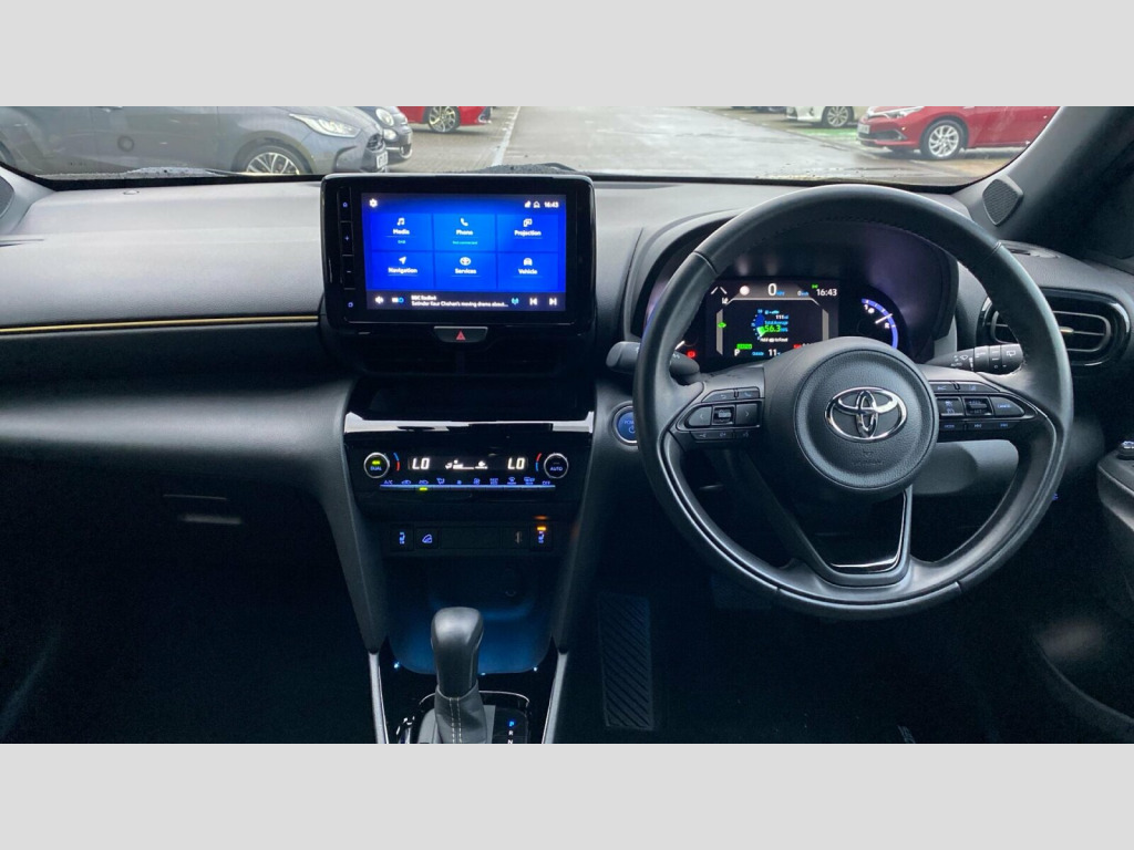 This 2022 Toyota Yaris Cross VVT-h Dynamic is a Toyota manufacturer approved vehicle with a full service history and very low mileage for its age, having only covered 11096 miles. This Euro 6 compliant, four wheel drive model boasts a 1.5L petrol hybrid engine and comes with a 12 month warranty for your peace of mind. It also benefits from an MOT valid until October 2026. Inside, you'll find a heated driver and front passenger seat, a reversing camera for easier parking, and a Tech Pack that includes Android Auto and Apple CarPlay. Keyless entry with smart entry and push button start, along with Bluetooth connectivity, add to the convenience of this Dynamic trim Yaris Cross.