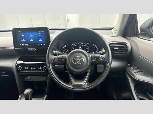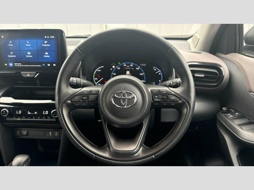 This 2022 Toyota Yaris Cross VVT-h Excel is a Toyota manufacturer approved vehicle, offering peace of mind with its excellent provenance. This four wheel drive model features a 1.5L petrol hybrid engine and meets Euro 6 emissions standards. Inside, you'll find a versatile deckboard in the boot, and for enhanced convenience and safety, it is equipped with intelligent front and rear parking sensors with clearance sonar and automatic braking, alongside an Advanced Safety Pack that includes blind spot assistance. Comfort is also a priority, with a heated steering wheel and heated front sport seats featuring power adjustable lumbar support for the driver.