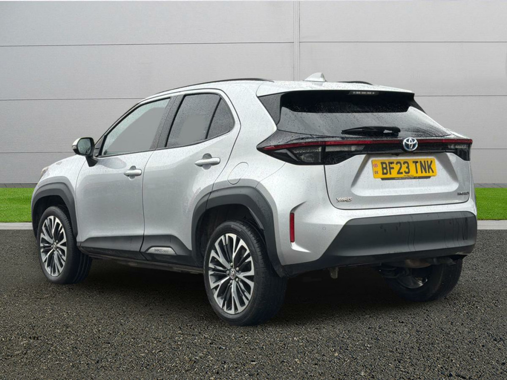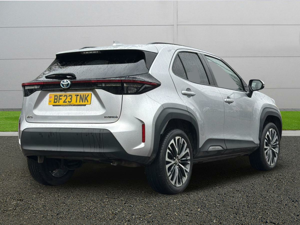 Driver Convenience,7in Multi-Information Display Screen,Drive Mode Selector,Driver Attention Alert,Hybrid System Indicator,Intelligent Adaptive Cruise Control,Intelligent Front and Rear Parking Sensors with Clearance Sonar and Automatic Braking,Key Reminder Warning,Reversing Camera,Road Sign Assist,Tyre Pressure Warning SystemEntertainment,Bluetooth Connectivity,Boot 12V Power Outlet,DAB Digital Radio,eCall Emergency Call System,Front 12V Power Outlet,MyT Connected Services,Shark Fin Antenna,Speakers x6,USB ConnectorExterior,18in Alloy Wheels - 5-Triple-Spoke - Machine-Face - Bi-Tone Dark Grey,Automatic Headlight Cut-Off,Black Protection Moulding on Side Doors,Black Wheel Arch Moulding,Dark Chrome-Plated Insert on Upper Front Grille,Door Handles - Body Coloured,Door Mirrors - Auto-Retractable - Heated and Power-Adjustable,Front Bumper - Body Coloured,Front Grille - Lower - Black,Front Grille - Upper - Gloss Black,Front LED Light Guide,Front Power Windows with Auto Up and Down Function,Indicator Integrated in Door Mirrors,Noise Reduction Layer on Windscreen,Privacy Glass,Rear Bumper - Body Coloured,Rear LED Light Guide,Rear Power Windows,Rear Spoiler,Rear Window Defogger and Wiper,Roof Rails - Aluminium,Tyre Repair KitInterior,3-Spoke Leather Steering Wheel,40-20-40 Split-folding 2nd Row Rear Seats,Adjustable Rear Headrests,Assist Grips - Front and Rear,Audio - Telephone - Multimedia - ACC - LDA - Voice Recognition and Speed Limiter Switches on Steering Wheel,Boot Light,Central Armrest,Coat Hooks - 2x Rear,Deckboard - 40-60 Split in Boot,Driver and Front Passenger Personal Lights,Driver and Passenger Sun Visors with Mirror,Dual-Zone Automatic Air Conditioning,Electrochromatic Auto-Dimming Rear View Mirror,Fabric Door Trims,Floor Mats - Yaris Cross Design,Front Console Box,Front Cup Holders,Glovebox,Grey Roof Lining,Hooks for Luggage Holding Belt,Leather Gear Shift Knob,Light Blue Ambient Lighting on Front Doors - Centre Console and Footwell,Light on Drivers and Passenger Sun Visor,Manual Tilt and Telescopic Adjustable Steering Wheel,Nanoe-X Air Purifier,Pollen Air Filter,Power Back Door with Kick Sensor,Power Passenger Window Lock,Rain Sensing Wipers,Rear Cup Holders,Seats - Drivers Height Adjustment,Seats - Front Seat-Back Pockets,Seats - Passengers Height Adjustment,Soft Tonneau Cover,Sport Seats - Front - Heated with Power-Adjustable Lumbar Support on Drivers Seat,Steering Wheel - Heated,Tech Pack,Under-Floor Storage in BootEntertainment,Bluetooth Connectivity,Boot 12V Power Outlet,DAB Digital Radio,eCall Emergency Call System,Front 12V Power Outlet,MyT Connected Services,Shark Fin Antenna,Speakers x6,USB Connector