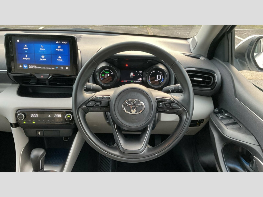 The Yaris Excel also enhances your driving experience with smartphone integration, including Apple CarPlay and Android Auto, allowing seamless connection to your devices. Toyota Safety Sense 2 is included, offering advanced driver assistance systems like adaptive cruise control for a more relaxed journey. With an impressive fuel economy of 66 mpg and low CO2 emissions, this Yaris offers a more economical and environmentally conscious driving experience compared to many other vehicles in its class. Fabric with Partial Synthetic Leather - Grey, 17in Alloy Wheels - Machined Face - Multi Spoke, 3-Spoke Leather Steering Wheel, 8in Multimedia Screen, ABS - Anti Lock Braking System, Acoustic Windscreen Glass, Active Headrests, Adjustable Boot Height - Two Level Floor, Adjustable Speed Limit with Speed Warning, Alarm and Immobiliser, Armrest - Front, Auto Windscreen Wipers, Automatic Headlights, Automatically Retractable Door Mirrors, Blind Spot Monitoring - BSM, Bluetooth Connectivity, Body Coloured Door Mirrors, Coat Hooks - Rear Grab Handles, Coloured Binocular-Inspired Display with Digital Speedometer, Cup Holders - 2 Front and Door, Data Communication Module, Daytime Running Lights - LED, Dual-Zone Automatic Air Conditioning, E-Call, Electric Power Steering - EPS, Electronic Parking Brake, Emergency Brake-Light System - EBS, Follow Me Home Headlights, Front Fog Lights - LED, Front Passenger Airbag On-Off Switch, Front Power Windows with Anti-Jam Function, Front and Rear Parking Sensors and Intelligent Clearance Sonar with Automatic Braking, Full LED Rear Lights, Glovebox, HAC - Hill Start Assist Control, Height Adjustable Driver Seat, Height Adjustable Passenger Seat, Hybrid Energy Display, ISOFIX Seat Fixing - Rear, LED Headlights, LED High Level Stop Light, Leather Gear Shift, Map Pocket - Back of Passengers Front Seats, Painted Front Grille, Pollen Filter, Power Remote Door Locking - Double Locking - Deadlock, Rear Power Windows with Anti-Jam Protection, Rear Privacy Glass, Rear Spoiler, Remote Locking via MyT, Reversing Camera, Satin Lower Front Grille, Seat Belt Reminder - Front and Rear, Shark Fin Antenna, Shopping Bag Hooks, Smart Entry and Push-Button Start, Smartphone Integration including Apple Car Play and Android Auto, Soft-Touch Instrument Panel, Space Saver Spare Wheel, Speakers x6, Split Folding Rear Seats - 60-40, Sports Seats - Front, Steering Wheel Switches, Supplemental Restraint System - SRS with 8 Airbags, TPMS - Tyre Pressure Monitoring System, Tilt and Telescopic Steering Wheel Adjustment, Toyota Safety Sense 2, Toyota Touch 2 Multimedia System with DAB Radio, Turning Signal Integrated in Door Mirrors, USB Connectivity x3, VSC - Vehicle Stability Control