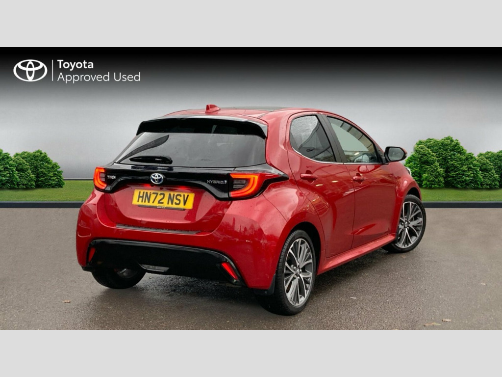 This 2022 Toyota Yaris VVT-h Excel is a superb example, having had only one owner since new. This stylish hatchback boasts a 1.5 litre petrol hybrid engine, meeting Euro 6 emission standards. It comes equipped with a suite of advanced features designed for your convenience and safety, including Blind Spot Monitoring with Blind Spot Assistance, a reversing camera with parking assistance, and bright LED headlights. You'll also appreciate the Smart Entry and Push Button Start system for effortless access and ignition, alongside Toyota Safety Sense 2, which includes Adaptive Cruise Control for a more relaxed driving experience.
