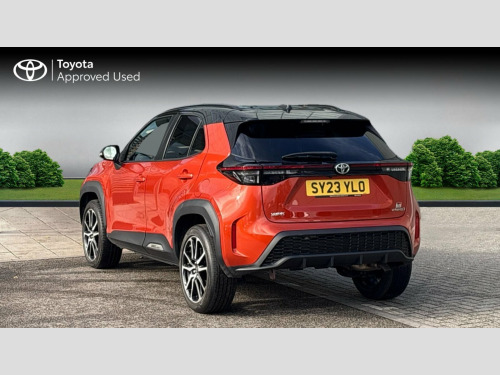This 2023 Toyota Yaris Cross VVT-h GR SPORT is a Toyota manufacturer approved vehicle with only one owner and a full service history, having last been serviced on 18th October 2025 at 24,614 miles. It boasts a 1.5L Petrol Hybrid engine, meets Euro 6 emissions standards, and comes with a 12 month warranty for your peace of mind. The MOT is valid until October 2026, ensuring its roadworthiness. Notable features include Intelligent Adaptive Cruise Control, heated front sport seats with power adjustable lumbar support for the driver, and a Tech Pack that integrates Android Auto and Apple CarPlay. For enhanced visibility and convenience, it is equipped with LED projector headlights and a reversing camera.