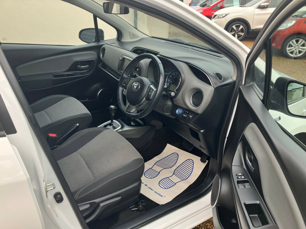 An amazing Toyota Yaris Icon 1.5 VVT-h Hatchback 5 Dr Auto Hybrid E-CVT Euro 6 ,in pristine condition. Finished in White the vehicle has only travelled just 47,300 miles. The service booklet contains 10 stamped entries, 8 of which are main dealer Toyota dealership. This Icon model is well equipped and boasts many features including a 7-inch high-resolution touchscreen with the Toyota Touch 2 system, Bluetooth and USB connectivity, and a rear-view reversing camera , Dual-zone climate control air conditioning, 3-spoke leather steering wheel with audio and telephone controls, front and rear cupholders, and a push start button,15in 5-spoke alloy wheels, body-coloured door mirrors and handles, front fog lights, and a piano black front grille.Well known for its excellent fuel economy, low running costs, and reliability. and being particularly well-suited for urban driving due to its hybrid system, what more do you want!., v socket, aux input, bluetooth connectivity, multi information display, radio with preset settings, speakers x6, touch screen - 7in high resolution, toyota touch 2, usb connection, ipod and mp3 connectivity, 15in alloy wheels - 5 spoke, body coloured door mirrors, door handles - body coloured, electric windows - front, electric and heated door mirrors, piano black front grille, rear satin chrome garnish, satin chrome surround on front fog lights, satin chrome surround on lower front grille, turning signal integrated in door mirrors, tyre repair kit, 3-spoke leather steering wheel, air conditioning - climate control- dual zone, clean air filter, coat hooks, cupholder - front and rear, glovebox, headrests - active front, instrument panel - dark grey, leather gear shift knob, leather handbrake lever, push start button, rear headrests x3, seats - anti-whiplash design, seats - drivers height adjustment, seats - front back pockets - passenger, seats - sliding front, soft-touch instrument panel, steering wheel - audio controls, steering wheel - telephone switch, tilt and telescopic adjustable steering wheel, abs - anti lock braking system, airbags - curtain, airbags - driver, airbags - driver knee, airbags - front passenger, airbags - front passenger cut-off switch, airbags - front side, bas - brake assist system, ebd - electronic brakeforce distribution, ebs - emergency brake signal, hac - hill start assist control, isofix child restraint system - 2nd row, remote central locking, seat belt reminder - front and rear, traction control - trc, transponder key engine immobiliser, vsc - vehicle stability control, daytime running lights, front fog lights, headlights - follow me home, high mounted rear brake light, projector headlights, electric power steering - eps, hybrid system indicator, rear view reversing camera, tpms - tyre pressure monitoring system, trip computer