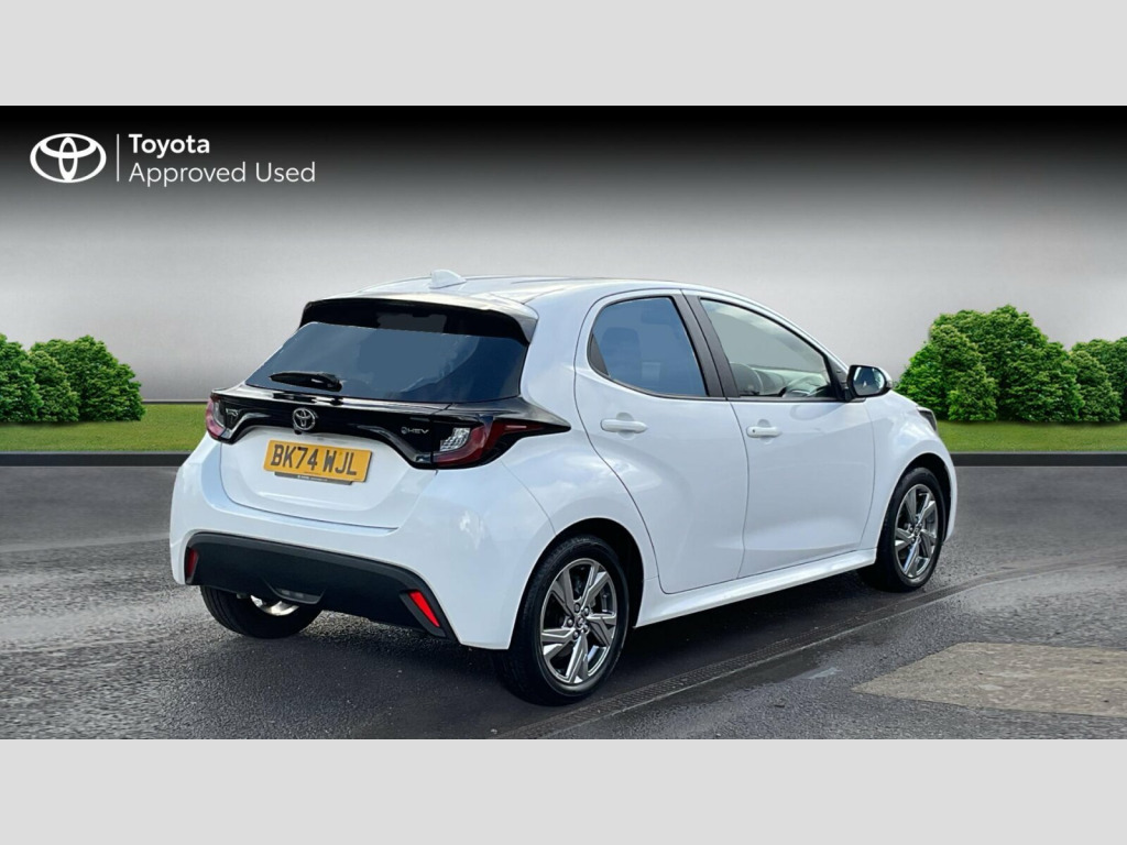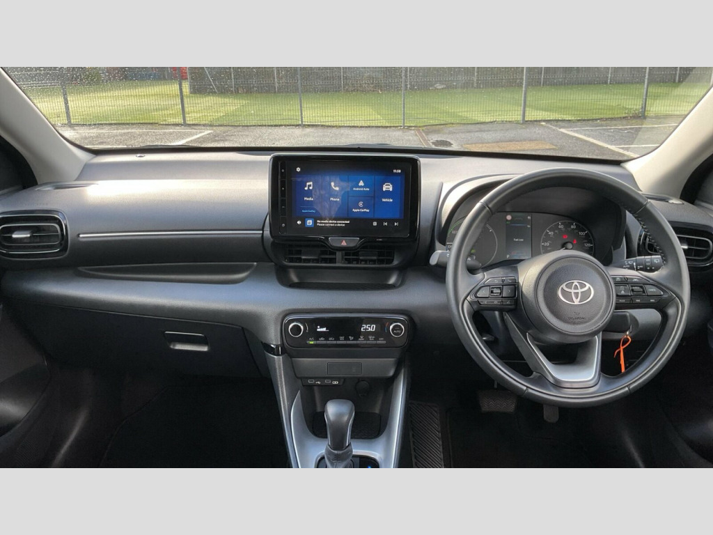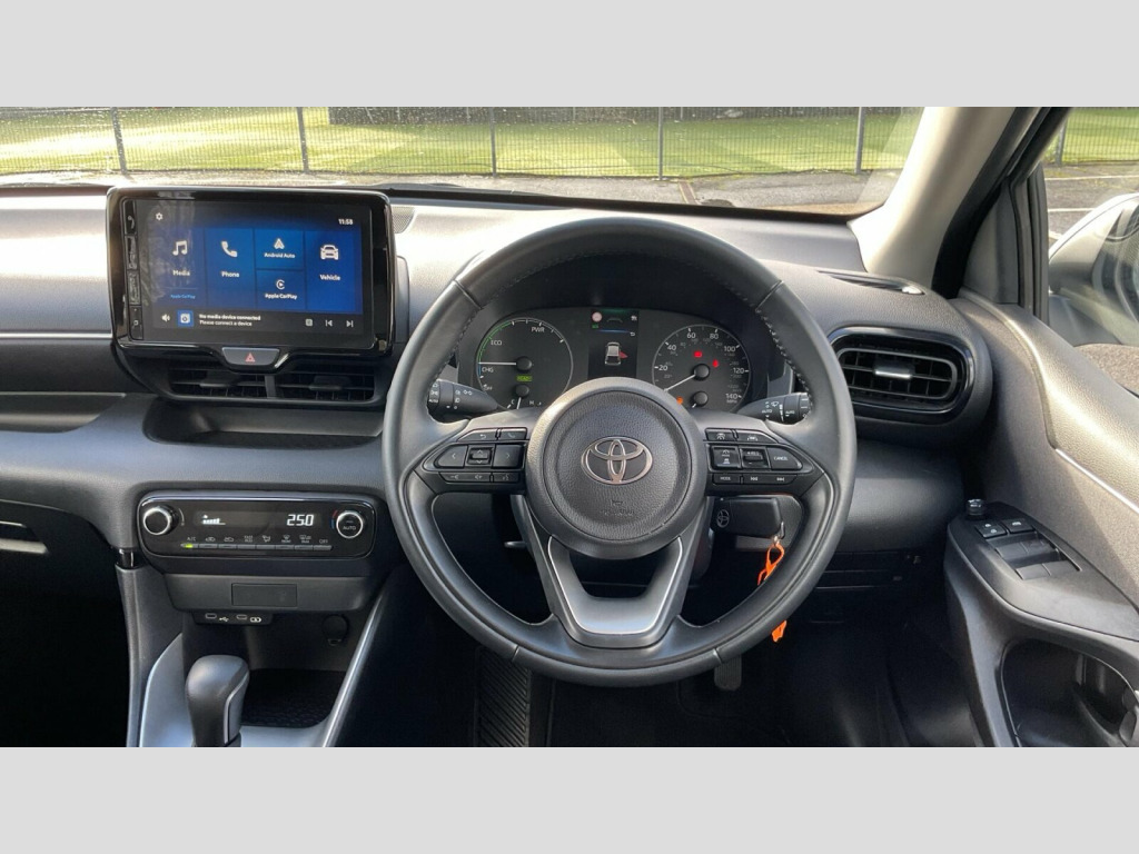 This 2024 Toyota Yaris Hybrid Icon is a Toyota manufacturer approved vehicle with a full service history, including its last service at 10084 miles on 2025-12-10. It boasts an MOT valid until October 2027 and benefits from the remainder of its 19 month warranty. This 1.5L petrol hybrid is a Euro 6 compliant model and comes equipped with notable features such as automatic headlights, automatic air conditioning, and Toyota Safety Sense 2 which includes adaptive cruise control. For your convenience, it also offers a touchscreen with Fabric - Black, 16in Alloy Wheels - Silver, 2x Master Key - Flip Out Blade and Remote Operation, 3-Spoke Leather Steering Wheel, 4.2in Coloured TFT Multi-Information Display with Anologue Speedometer, 7in Multimedia Screen, ABS - Anti Lock Braking System, Acoustic Windscreen Glass, Active Headrests, Adaptive Cruise Control, Adjustable Speed Limit with Speed Warning, Alarm and Immobiliser, Armrest - Front, Auto Windscreen Wipers, Automatic Air Conditioning, Automatic Headlights, Bluetooth Connectivity, Body Coloured Door Mirrors, Bulb Indicators, Coat Hooks - Rear Grab Handles, Cup Holders - 2 Front and Door, Data Communication Module, Daytime Running Lights, E-Call, Electric Power Steering - EPS, Electric and Heated Door Mirrors, Electronic Parking Brake, Emergency Brake-Light System - EBS, Follow Me Home Headlights, Front Passenger Airbag On-Off Switch, Front Power Windows with Anti-Jam Function, Glovebox, Grey Roof Lining, HAC - Hill Start Assist Control, Halogen Projector Headlights, Height Adjustable Driver Seat, Hybrid Energy Display, ISOFIX Seat Fixing - Rear, LED High Level Stop Light, Leather Gear Shift, Manual Headlight Levelling, Pollen Filter, Power Remote Door Locking - Double Locking - Deadlock, Rear Spoiler, Reversing Camera, Seat Belt Reminder - Front and Rear, Shark Fin Antenna, Shopping Bag Hooks, Smartphone Integration including Apple Car Play and Android Auto, Soft-Touch Instrument Panel, Space Saver Spare Wheel, Speakers x4, Split Folding Rear Seats - 60-40, Steering Wheel Switches, Supplemental Restraint System - SRS with 8 Airbags, TPMS - Tyre Pressure Monitoring System, Tilt and Telescopic Steering Wheel Adjustment, Toyota Safety Sense 2, Toyota Touch 2 Multimedia System with DAB Radio, Turning Signal Integrated in Door Mirrors, USB Connectivity, VSC - Vehicle Stability Control, Voice Recognition