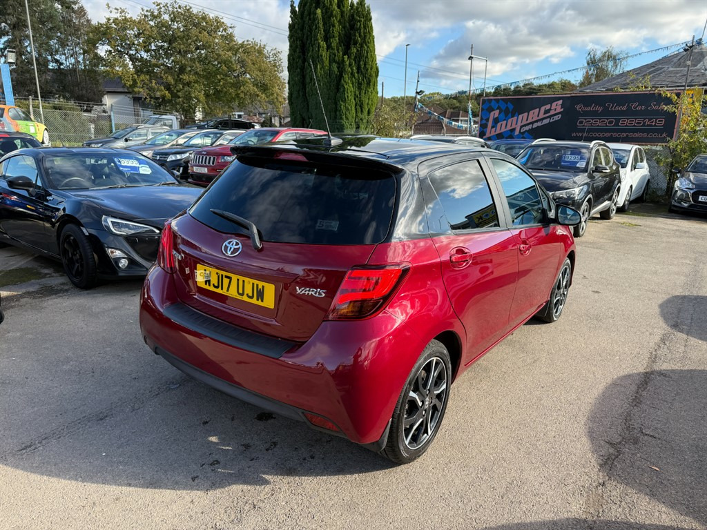 Toyota Yaris 1.3 Design in metallic red. A lovely example here, in great condition both inside and out. Comes with Stacks of Toyota main dealer service history, a really well cared for car. Great spec too including Sat-Nav, Reversing Camera, 4x Electric Windows, USB, A/C, Alloy Wheels etc. With a remarkable fuel consumption of up to 65mpg and only £35 road tax per annum, this Yaris is not just stylish but also economical, making it a smart choice for both city and long-distance driving. Don't miss out on this fantastic opportunity to own a well-equipped, economical vehicle. Contact Coopers Car Sales today at 02920885149 to arrange a test drive and experience the exceptional features of the Toyota Yaris for yourself! 12v Socket,Adjustable Steering Wheel,Air Conditioning,Alarm,Alloy Wheels,Anti Lock Brakes,Auto On Headlights,Aux Input,Bluetooth Audio Streaming,Bluetooth Telephone Hands Free,CD Radio,Central Locking,Cloth Upholstery,Cupholders,DAB Radio,Driver Airbag,Electric & Heated Door Mirrors,Electric Windows,Front & Rear Electric Windows,Front Fog Lights,Fuel Computer,Height Adjustable Drivers Seat,Immobiliser,ISOFIX,Metallic Paint,Multiple Airbags,Power Assisted Steering,Remote Central Locking,Reversing Camera,Satellite Navigation,Split Folding Rear Seats,Traction Control,Trip Computer,Tyre Pressure Monitor,USB