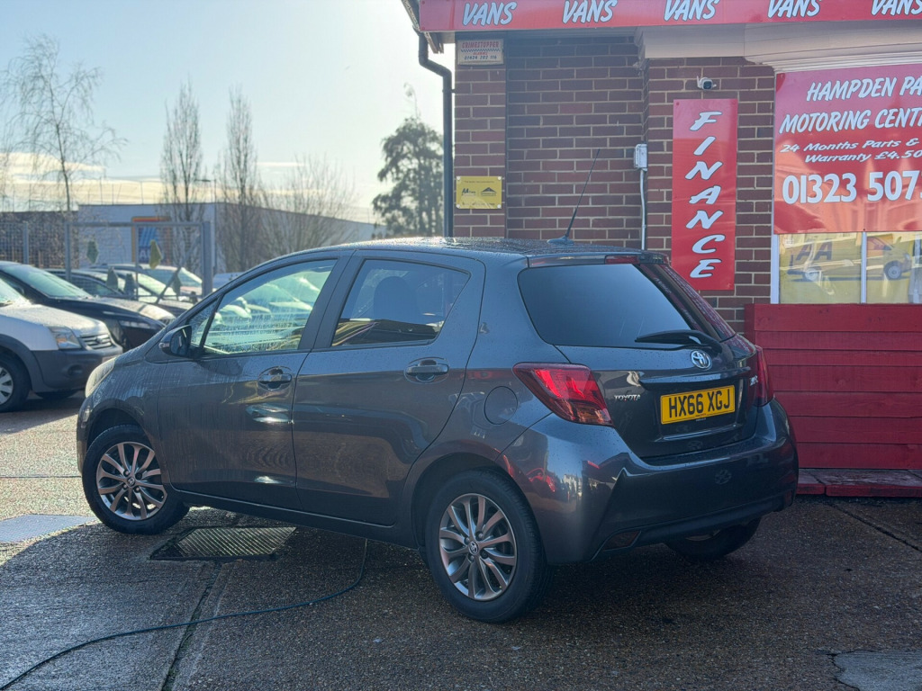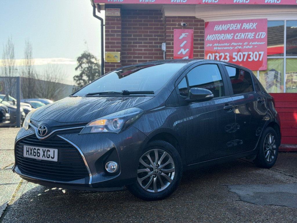 FREE 2YRS PARTS & LABOUR WARRANTY. Hampden park Motoring Centre are pleased to be offering this Toyota Yaris ICON VVT-I for sale, with local owners and only covered a mere 29600 miles. This car comes with FULL SERVICE HISTORY ( main dealer + independents ) and will leave with an oil & filter service, a new MOT and a PDI. Finished in Decuma grey with black plush trim.A mid-2014 facelift has done wonders for the Yaris, turning what was a relatively nondescript hatchback into something far smarter and more attractive. The most obvious feature is the cross-shaped nose that apes that of the Aygo city car. Hand in hand with the changes to the body of the Yaris in mid-2014 came similarly major changes inside. Thanks to the new materials and a few redesigned bits and pieces, there's no doubt that the cabin is now a far more appealing place than ever before - with a nice seven-inch touch-screen system.The Yaris has plenty of room for those up front, and there are lots of handy cubbies to stash odds and ends in. Those relegated to the rear seats will enjoy very generous legroom. The 286-litre boot is competitive by class standards and all models come with split-folding rear seats to boost cargo-carrying capacity. Toyota has a stunning reputation for reliability, which should give you peace of mind that your Yaris won't let you down.The Yaris comes jam-packed with safety equipment, including seven airbags and electronic stability control. This generous roster of safety kit helped earn the car the maximum five-star rating in Euro NCAP crash tests. Beyond that, there's also Isofix mountings on the outer rear seats, as well as a tyre pressure monitor.Please call to arrange viewing & test drive Hampden Park Motoring Centre 01323 507307. Here at Hampden park Motoring Centre we have up to 50 cars on show, also at our Hailsham Motoring Centre branch we have up to 50 further cars available for viewing, please call 01424 733777 for more info. For more information on our Yaris please see the benefits below as stated or visit the web site