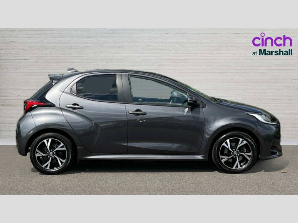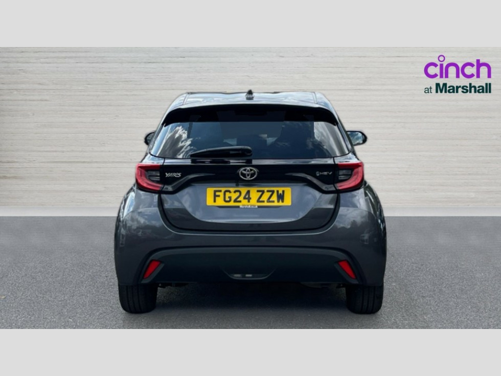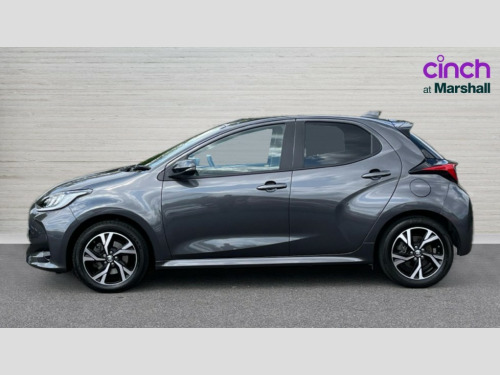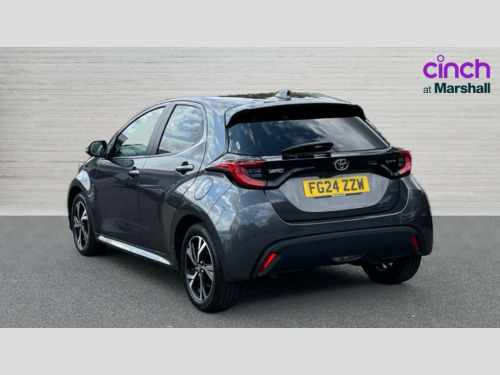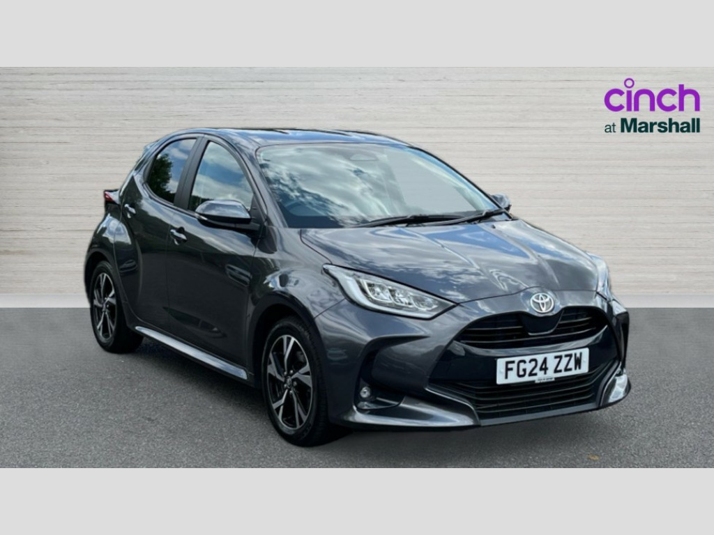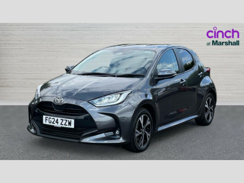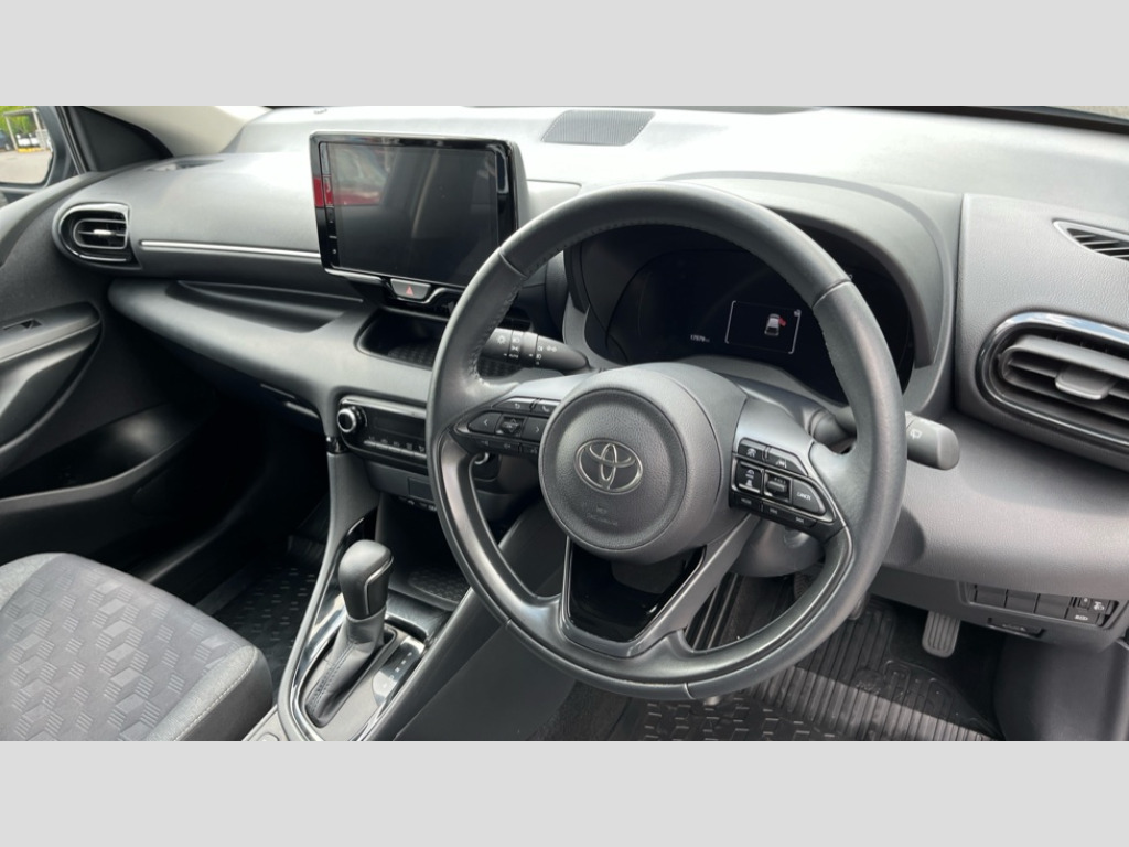 Toyota Yaris 1.5 Hybrid Design 5dr CVT 7" Digital Combimeter, Adaptive cruise control, Adjustable speed limit with speed warning, Bluetooth connectivity, Colour binocular inspired displays with digital speedometer, E-call, Electric power steering, Hybrid energy display, Multi information display switches on steering wheel, Reversing camera, Smartphone integration with Apple CarPlay and Android auto, Tailgate, Voice recognition, Vehicle Stability Control (VSC), 4 speakers, 9" Multimedia touch display, Toyota Touch 3 system with DAB radio, USB connection, Acoustic windscreen glass, Auto windscreen wipers, Automatic headlights, Body coloured door mirrors, Electric adjustable heated door mirrors, Follow me home headlights, Front auto power windows with anti jam protection, Full LED rear lights, LED daytime running lights, LED front fog lights, LED front light guide, LED Headlights, LED High mounted stop lamp, LED Indicators, LED rear light guide, Manual headlight levelling, Painted chequered front grille, Rain sensor, Rear auto power windows with anti jam protection, Rear privacy glass, Rear side wing doors, Rear spoiler, Rear wiper, Shark fin antenna, Turning signal integrated indicators in door mirrors, Variable front intermittent wipers, 3 adjustable rear headrests, 3 seat bench in 2nd row, 3 spoke leather steering wheel, 60/40 split folding rear seat, Active headrests, Adjustable boot height, Auto air conditioning, Coat hooks in rear grab handles, Cup holders (2 front & door), Data Communication Module (DCM) connected services, Fabric upholstery, Front armrest, Glovebox, Grey roof lining, Height adjustable driver's seat, Isofix seat fixing, Leather gearshift, Pollen filter, Shopping bag hooks, Single front passenger seat, Tilt/telescopic steering column, 3 point seatbelts on all rear seats, ABS+EBD+Brake assist, Electronic parking brake, Emergency brake light system (EBS), Front passenger airbag on/off switch, Front seatbelt reminder, Hill start assist control (HAC), Rear child proof door locks, Rear seat belt reminder, Supplemental Restraint System (SRS) 8 airbags: Driver & passenger's airbags, dual side curtain airbags, side impact airbags, front centre airbag, Toyota Safety Sense 3 with over the air updates, Tyre pressure warning system, 2x Master key, Alarm/immobiliser, Remote powered central double locking doors, Soft touch instrument panel, Space saver spare wheel