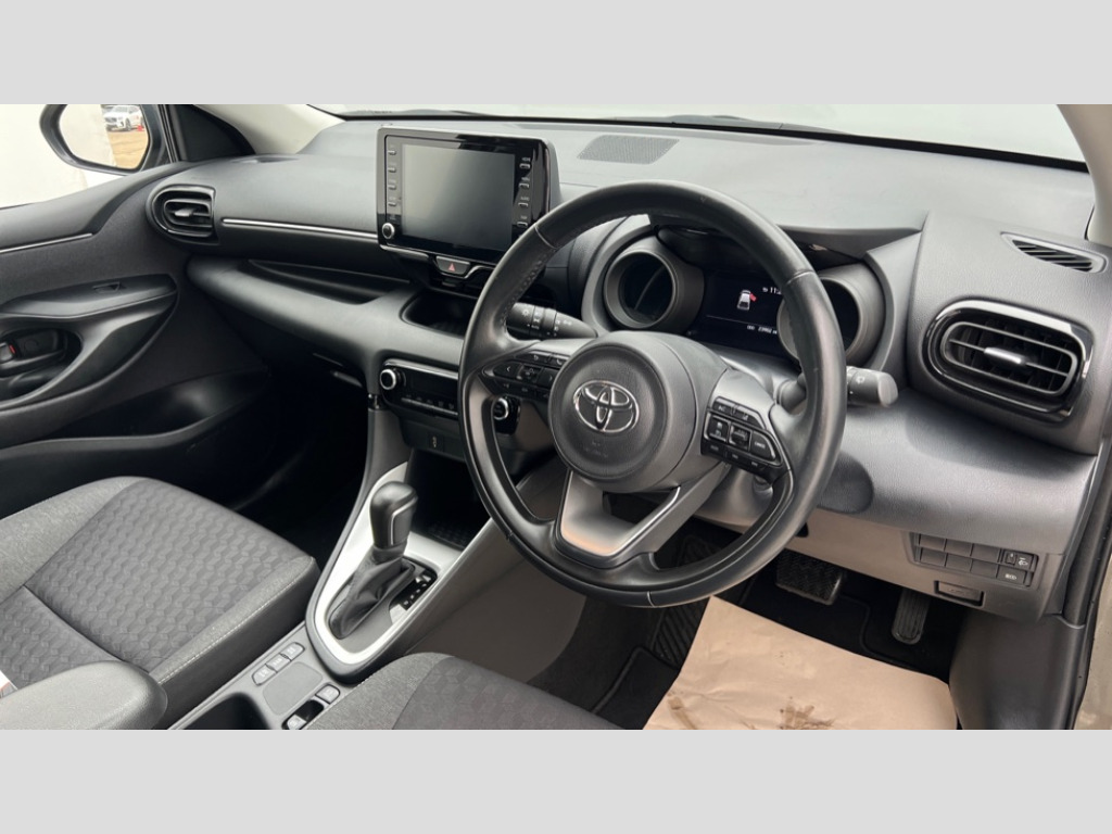 Toyota Yaris 1.5 Hybrid Design 5dr CVT Adaptive cruise control, Adjustable speed limit with speed warning, Bluetooth connectivity, Colour binocular inspired displays with digital speedometer, E-call, Electric power steering, Hybrid energy display, Multi information display switches on steering wheel, Reversing camera, Smartphone integration with Apple CarPlay and Android auto, Tailgate, Voice recognition, Vehicle Stability Control (VSC), 4 speakers, 8" Multimedia display touch screen, USB connection, Acoustic windscreen glass, Auto windscreen wipers, Automatic headlights, Body coloured door mirrors, Electric adjustable heated door mirrors, Follow me home headlights, Front auto power windows with anti jam protection, Full LED rear lights, LED daytime running lights, LED front fog lights, LED front light guide, LED Headlights, LED High mounted stop lamp, LED Indicators, LED rear light guide, Manual headlight levelling, Painted chequered front grille, Rain sensor, Rear auto power windows with anti jam protection, Rear privacy glass, Rear side wing doors, Rear spoiler, Rear wiper, Shark fin antenna, Turning signal integrated indicators in door mirrors, Variable front intermittent wipers, 3 adjustable rear headrests, 3 spoke leather steering wheel, 60/40 split folding rear seat, Active headrests, Adjustable boot height, Auto air conditioning, Coat hooks in rear grab handles, Cup holders (2 front & door), Data Communication Module (DCM) connected services, Fabric upholstery, Front armrest, Glovebox, Grey roof lining, Height adjustable driver's seat, Isofix seat fixing, Leather gearshift, Pollen filter, Shopping bag hooks, Single front passenger seat, Tilt/telescopic steering column, 3 point seatbelts on all rear seats, ABS+EBD+Brake assist, Electronic parking brake, Emergency brake light system (EBS), Front passenger airbag on/off switch, Front seatbelt reminder, Hill start assist control (HAC), Rear child proof door locks, Rear seat belt reminder, Supplemental Restraint System (SRS) 8 airbags: Driver & passenger's airbags, dual side curtain airbags, side impact airbags, front centre airbag, Toyota Safety Sense 2, Precollison + Night time Pedestrian & Cyclist Detection, Lane Trace Assist, Auto High Beam, Intelligent ACC & Road Sign Assist, Tyre pressure warning system, 2x Master key, Alarm/immobiliser, Remote powered central double locking doors, Soft touch instrument panel, Space saver spare wheel