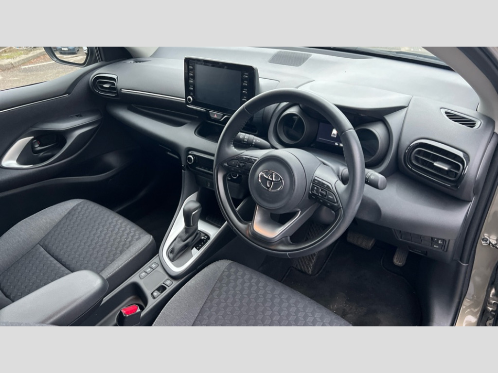 Toyota Yaris 1.5 Hybrid Design 5dr CVT 7" Digital Combimeter, Adaptive cruise control, Adjustable speed limit with speed warning, Bluetooth connectivity, Colour binocular inspired displays with digital speedometer, E-call, Electric power steering, Hybrid energy display, Lane trace assist, Multi information display switches on steering wheel, Pre-collision system (PCS), Reversing camera, Smartphone integration with Apple CarPlay and Android auto, Tailgate, Voice recognition, Vehicle Stability Control (VSC), 4 speakers, 9" Multimedia touch display, Toyota Touch 3 system with DAB radio, USB connection, Acoustic windscreen glass, Auto high beam assist, Auto windscreen wipers, Automatic headlights, Body coloured door mirrors, Electric adjustable heated door mirrors, Follow me home headlights, Front auto power windows with anti jam protection, LED daytime running lights, LED front fog lights, LED front light guide, LED Headlights, LED High mounted stop lamp, LED Indicators, LED rear light guide, Manual headlight levelling, Painted chequered front grille, Rain sensor, Rear auto power windows with anti jam protection, Rear privacy glass, Rear roof spoiler, Rear side wing doors, Rear wiper, Shark fin antenna, Turning signal integrated indicators in door mirrors, Variable front intermittent wipers, 3 adjustable rear headrests, 3 seat bench in 2nd row, 3 spoke leather steering wheel, 60/40 split folding rear seat, Active headrests, Adjustable boot height, Auto air conditioning, Coat hooks in rear grab handles, Cup holders (2 front & door), Data Communication Module (DCM) connected services, Fabric upholstery, Front armrest, Glovebox, Grey roof lining, Height adjustable driver's seat, Isofix seat fixing, Leather gearshift, Pollen filter, Shopping bag hooks, Single front passenger seat, Tilt/telescopic steering column, 3 point seatbelts on all rear seats, ABS+EBD+Brake assist, Electronic parking brake, Emergency brake light system (EBS), Front passenger airbag on/off switch, Front seatbelt reminder, Hill start assist control (HAC), Rear child proof door locks, Rear seat belt reminder, Supplemental Restraint System (SRS) 8 airbags: Driver & passenger's airbags, dual side curtain airbags, side impact airbags, front centre airbag, Toyota Safety Sense 3 with over the air updates, Tyre pressure warning system, 2x Master key, Alarm/immobiliser, Remote powered central double locking doors, Soft touch instrument panel, Space saver spare wheel